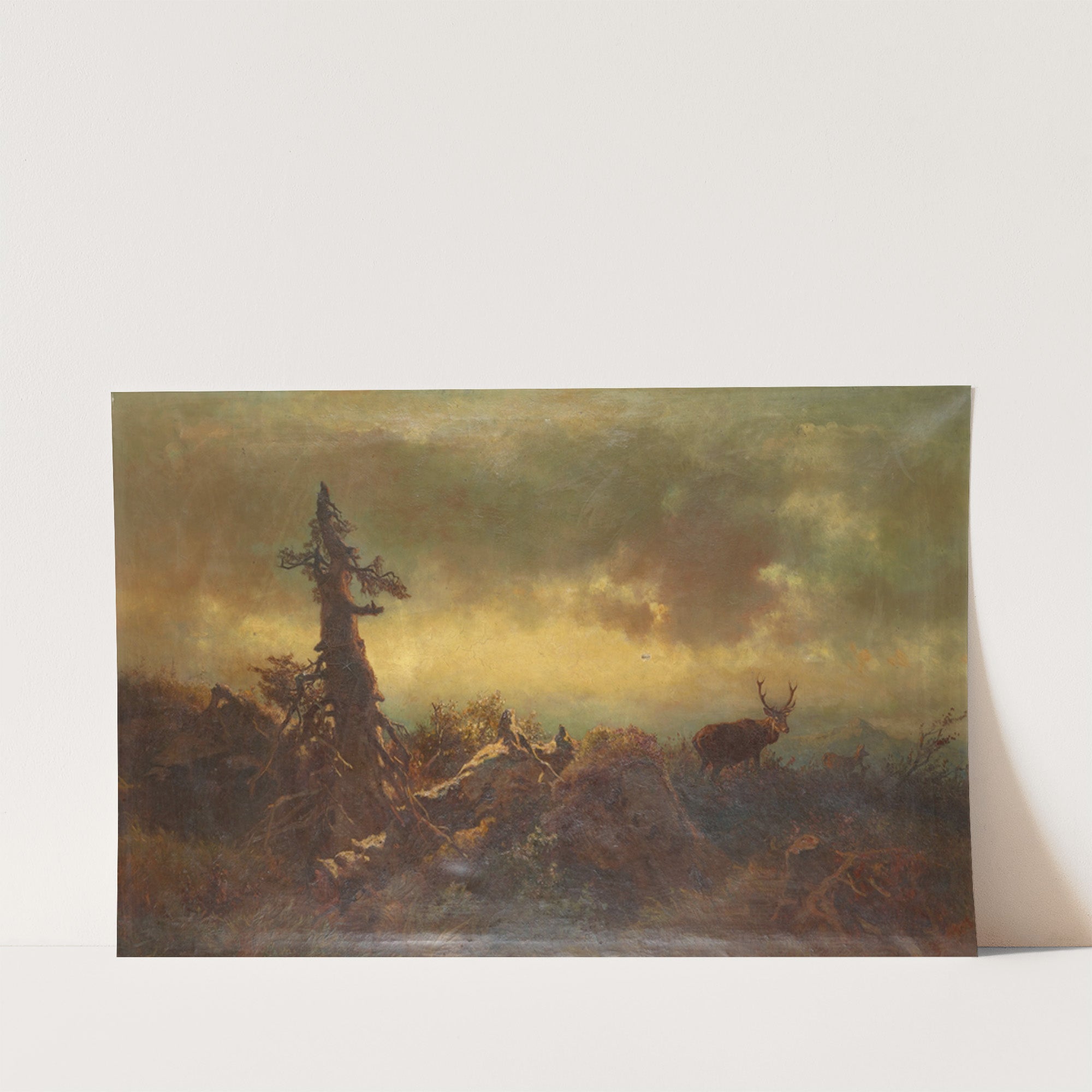 Hochebene mit Hirsch (1885) by Anton Schrödl - Wall Art Print