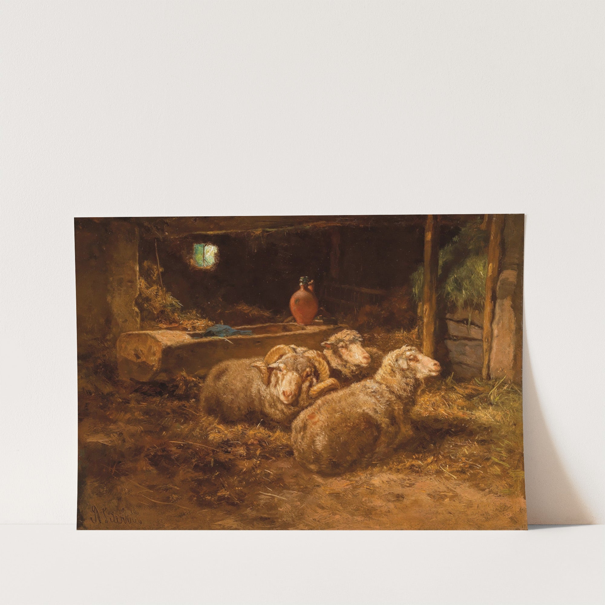 Schafe im Stall by Anton Schrödl - Wall Art Print