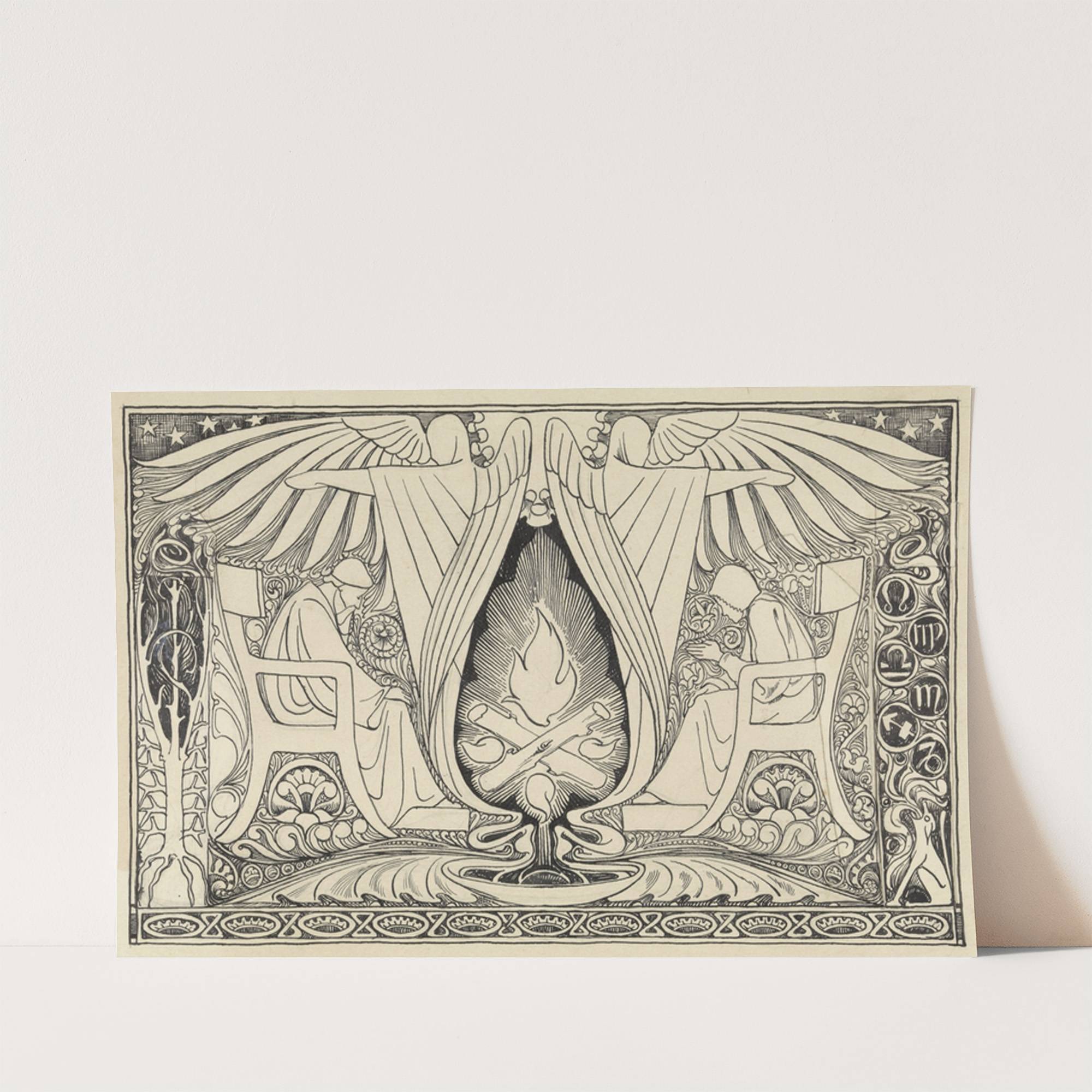 Ornamentale voorstelling van man en vrouw aan weerszijden van een haardvuur by Antoon Derkinderen  - Wall Art Print