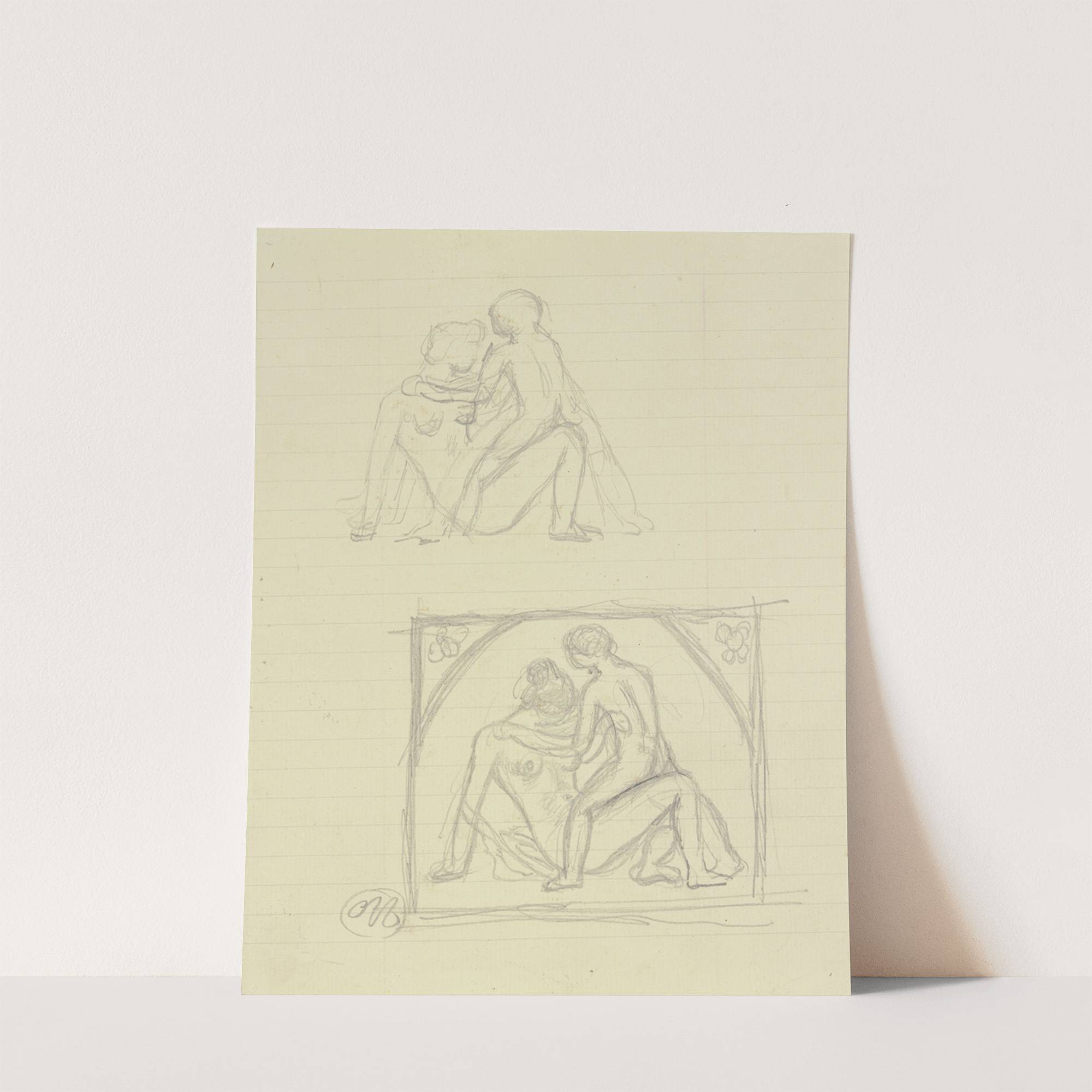 Studienblatt; Lagernder weiblicher Akt mit Kind by Aristide Maillol - Wall Art Print