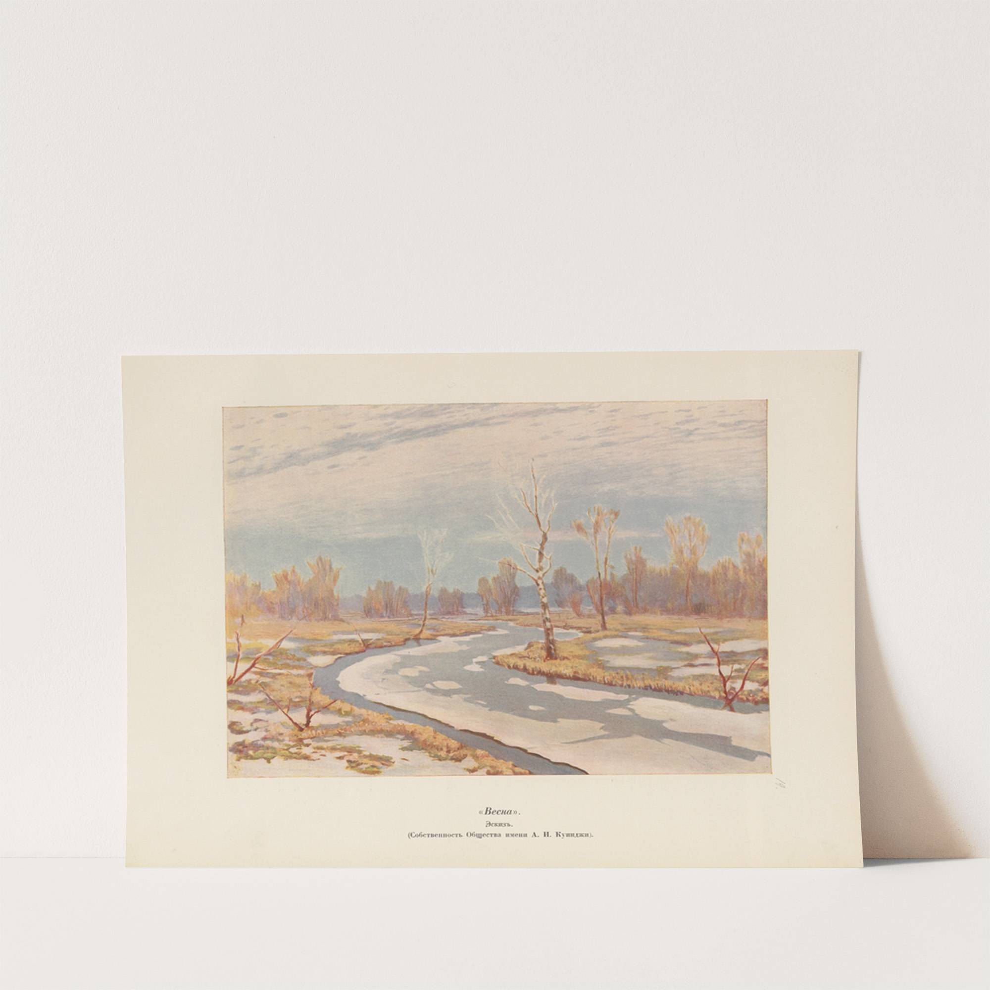 This art print features "River in Autumn" by Arkhip Ivanovich Kuindzhi, created in 1913. The piece is a beautifully detailed watercolor painting that captures the serene beauty of an autumn landscape. A gently winding river snakes through the center of...