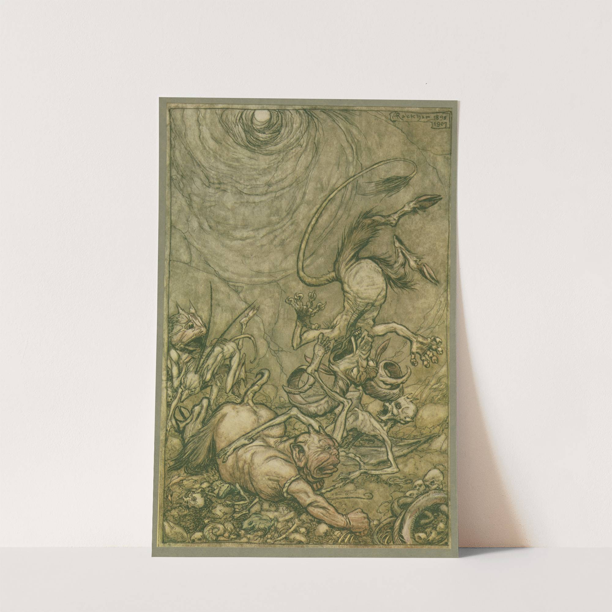 Into the bottomless pit he fell slap. by Arthur Rackham - Wall Art Print