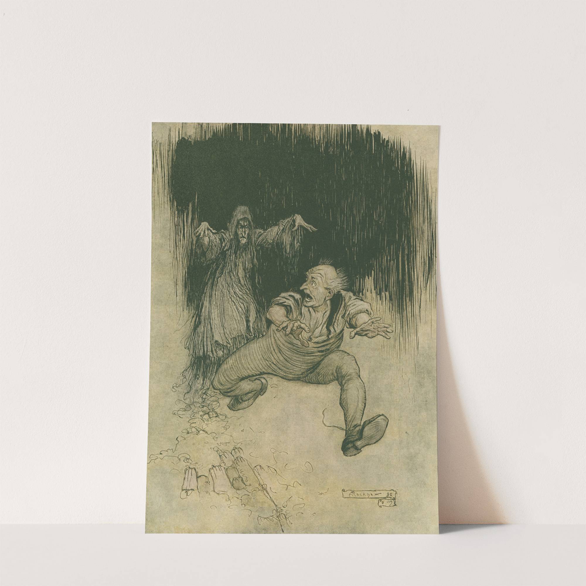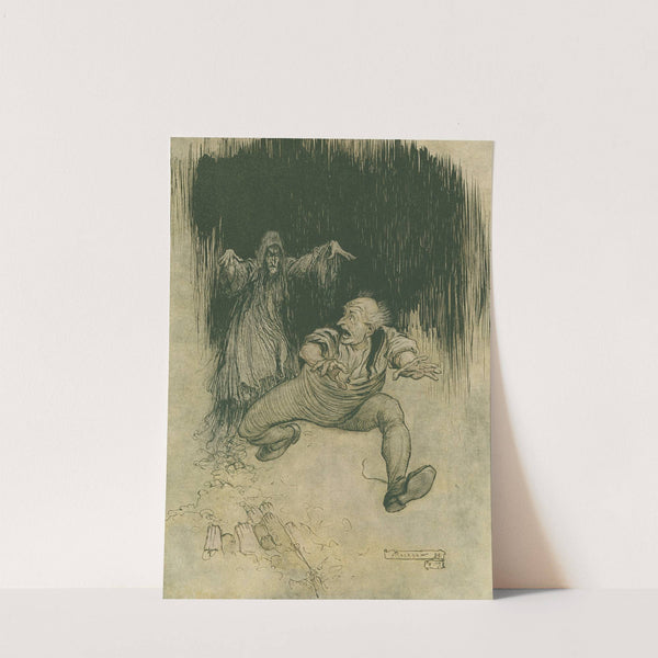 The moment her shadowy form met his view he…made one grasshopper spring to the door–and was gone! by Arthur Rackham - Wall Art Print