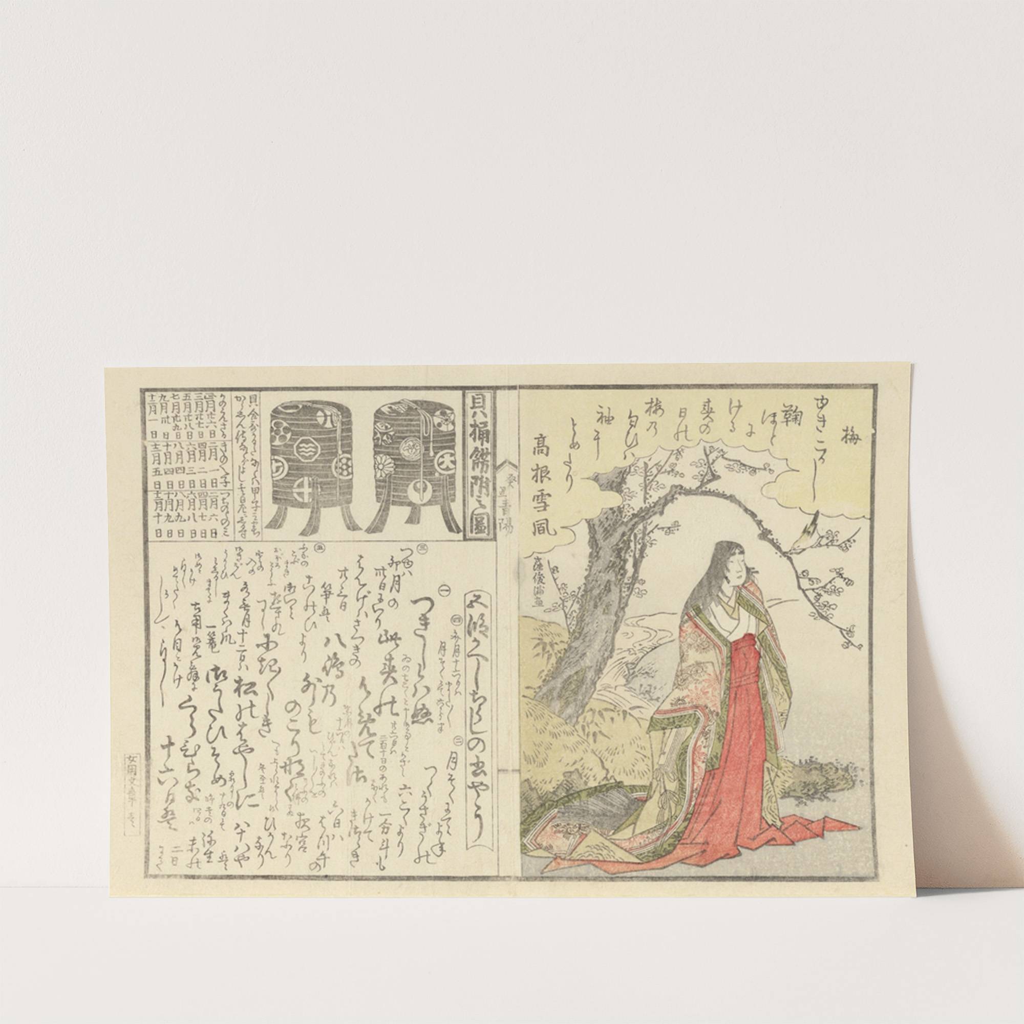 Court Lady Beneath an Old Plum Tree; Two Lacquer Cabinets for the Shell-matching Game (1793) by Kubo Shunman - Wall Art Print