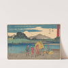 This vibrant art print captures a serene yet industrious scene by the lakeside, illustrated in the classic ukiyo-e style by renowned artist Hiratsuku. The composition features five figures engaged in loading yellow rice bundles onto a horse-drawn cart beside a...