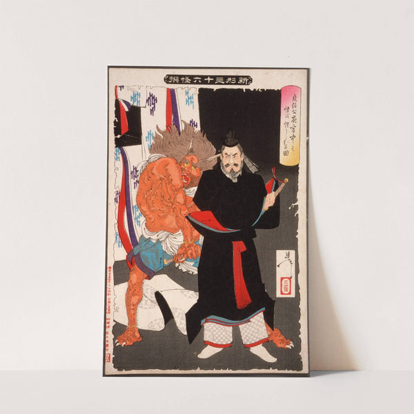 Lord Sadanobu Threatens a Demon in the Palace at Night by Tsukioka Yoshitoshi - Wall Art Print