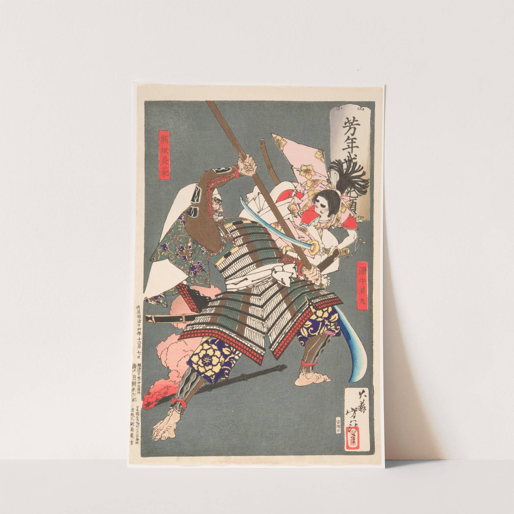 Minamoto no Ushiwakamaru Battling with the Brigand Kumasaka Chōhan by Tsukioka Yoshitoshi - Wall Art Print