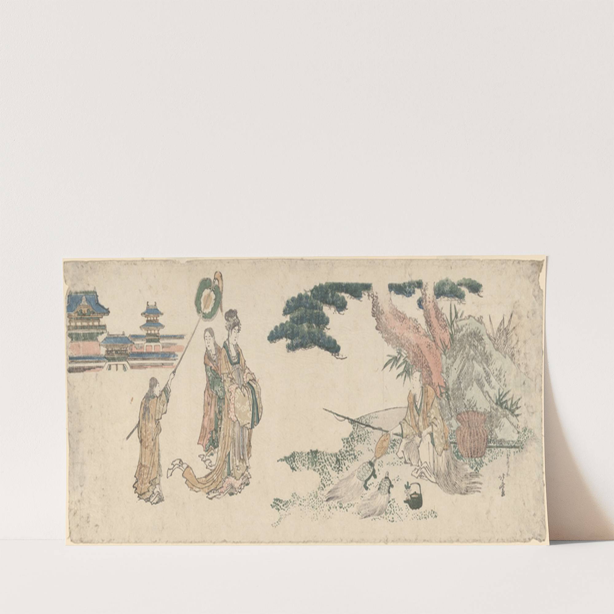 Old Man Feeding the Turtles; Princes and Attendants Approaching (late 18th century – early 19th century) by Katsushika Hokusai - Wall Art Print