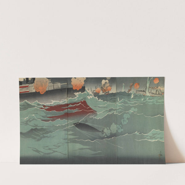 Our Torpedo Hitting a Russian Warship at the Great Naval Battle of Port Arthur (1904) by Kobayashi Kiyochika - Wall Art Print
