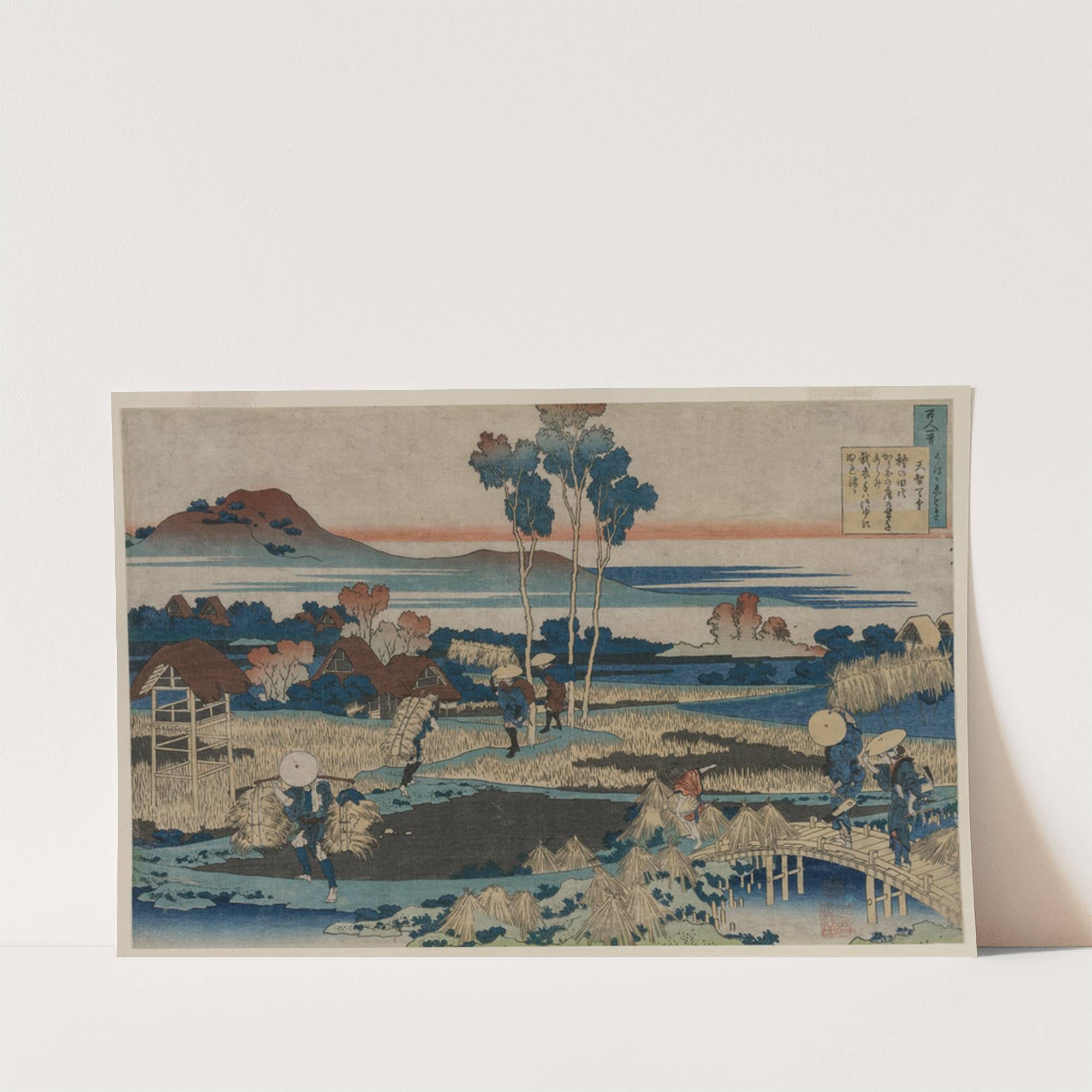 Poem by Emperor Tenchi, from the series One Hundred Poems by One Hundred Poets Explained by the Nurse by Katsushika Hokusai - Wall Art Print