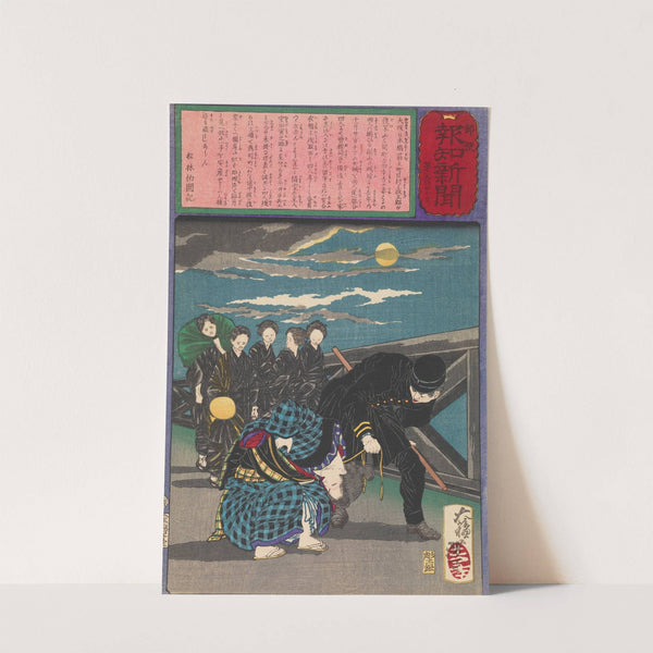 The Widow Fuku Giving Birth on the Way to Court for Arraignment for Theft by Tsukioka Yoshitoshi - Wall Art Print