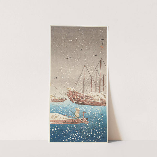 Tsukuda no fubuki (Snowstorm at Tsukuda) by Takahashi Hiroaki - Wall Art Print