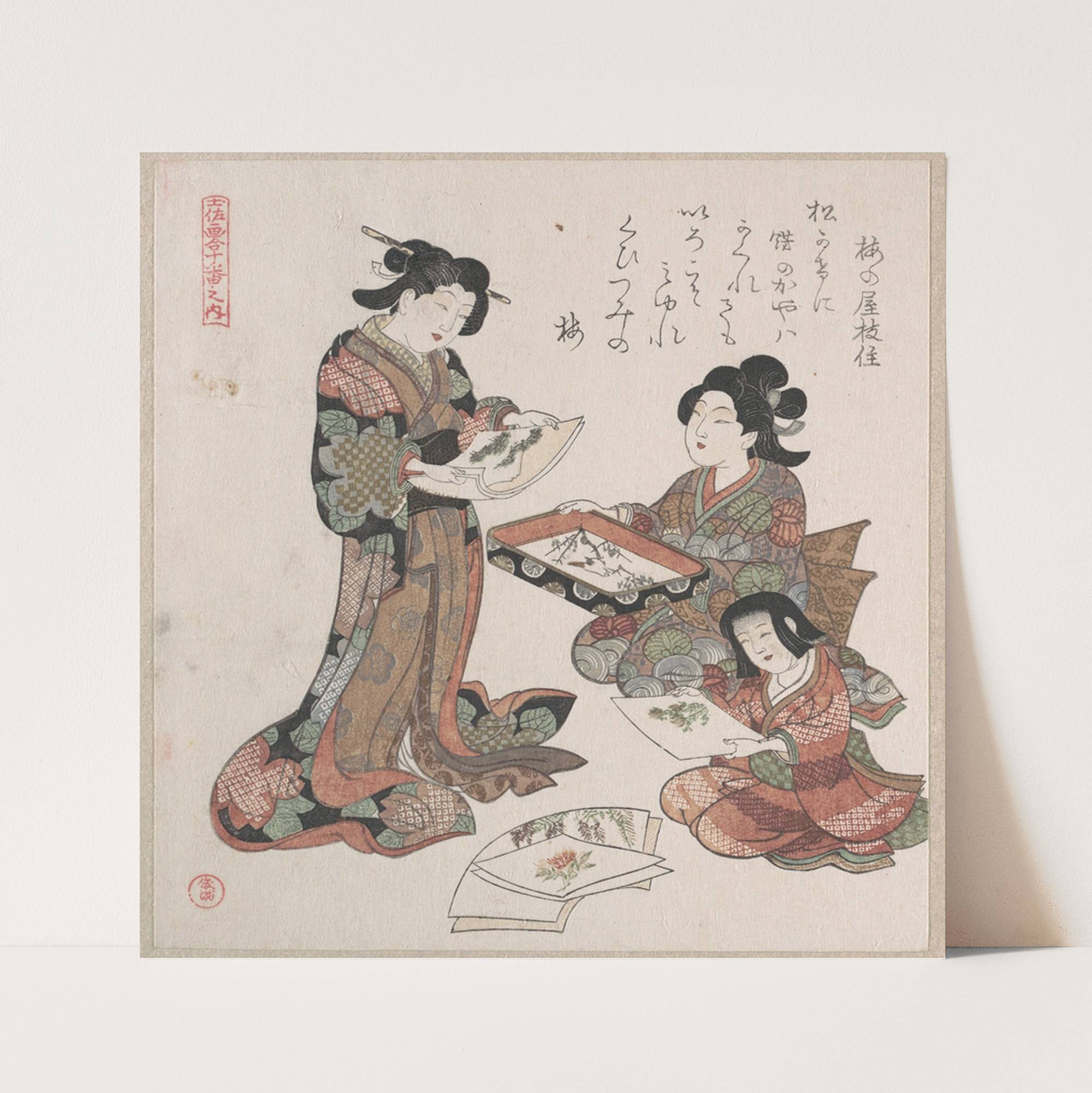 Two Women and a Girl Looking at Paintings (1815) by Kubo Shunman - Wall Art Print
