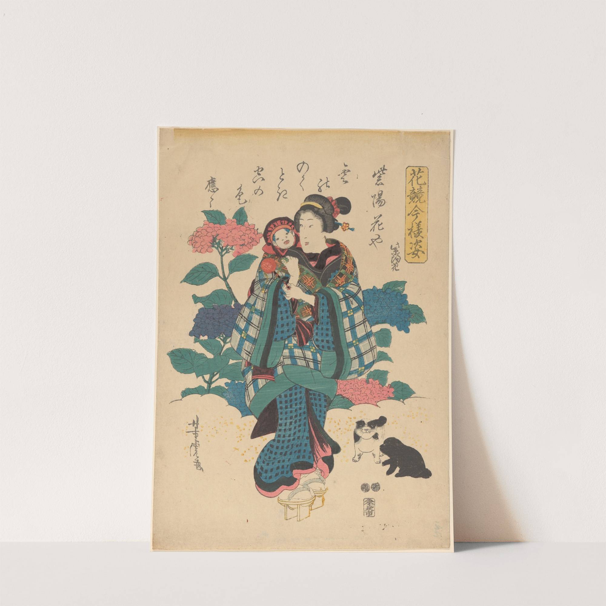Woman Holding Baby with Cap; Dog and Cat by Yoshitoro - Wall Art Print