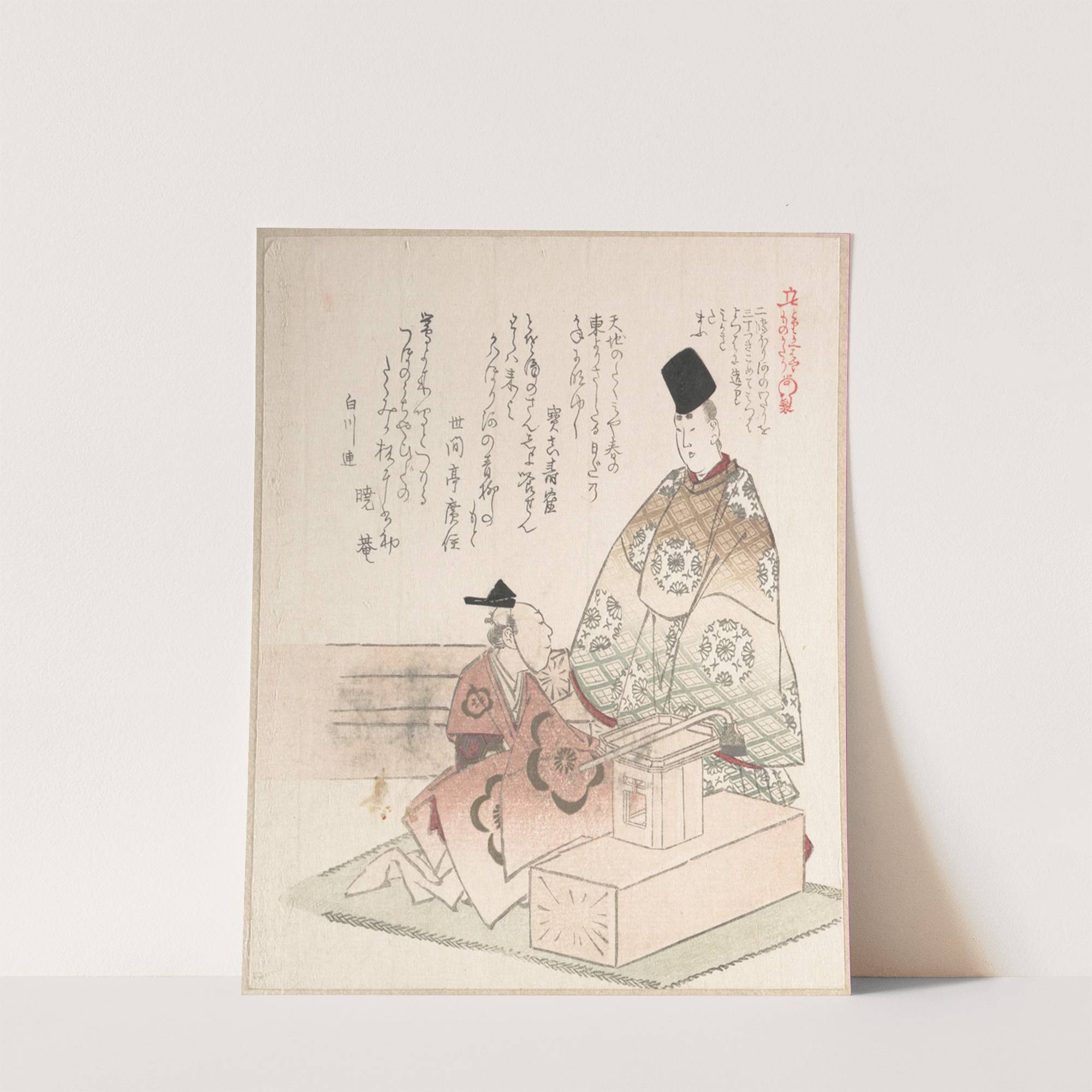 Young Nobleman and Carpenter by Kubo Shunman - Wall Art Print