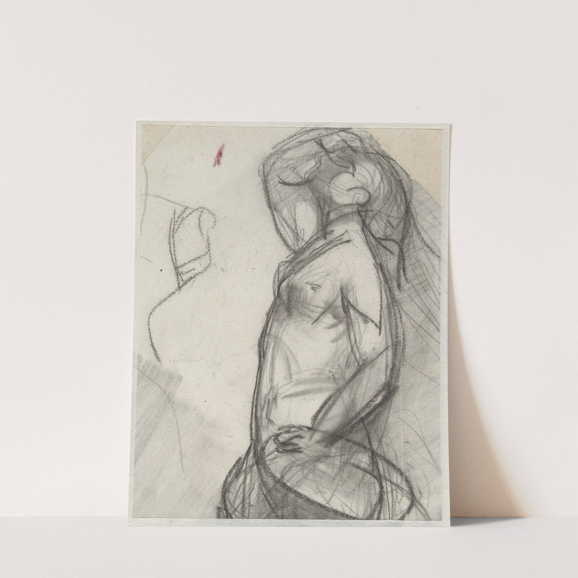 Staand vrouwelijk naakt, omhoog kijkend met de hand boven de ogen by August Allebé - Wall Art Print