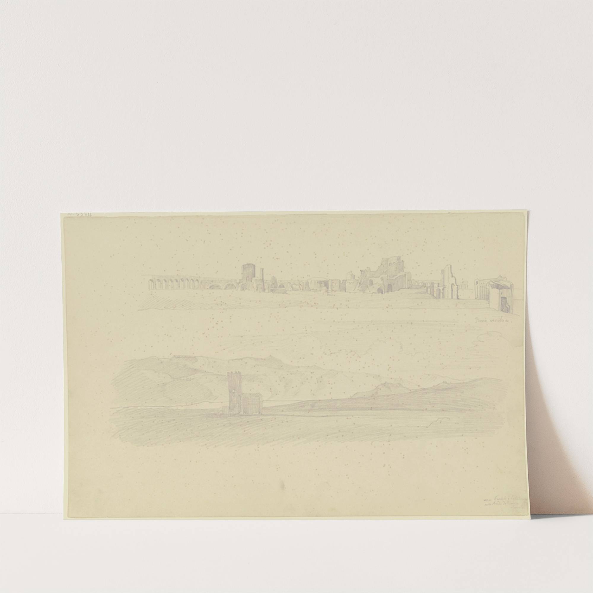 Römische Ruinen und Blick auf die Berge in der Campagna by August Lucas - Wall Art Print