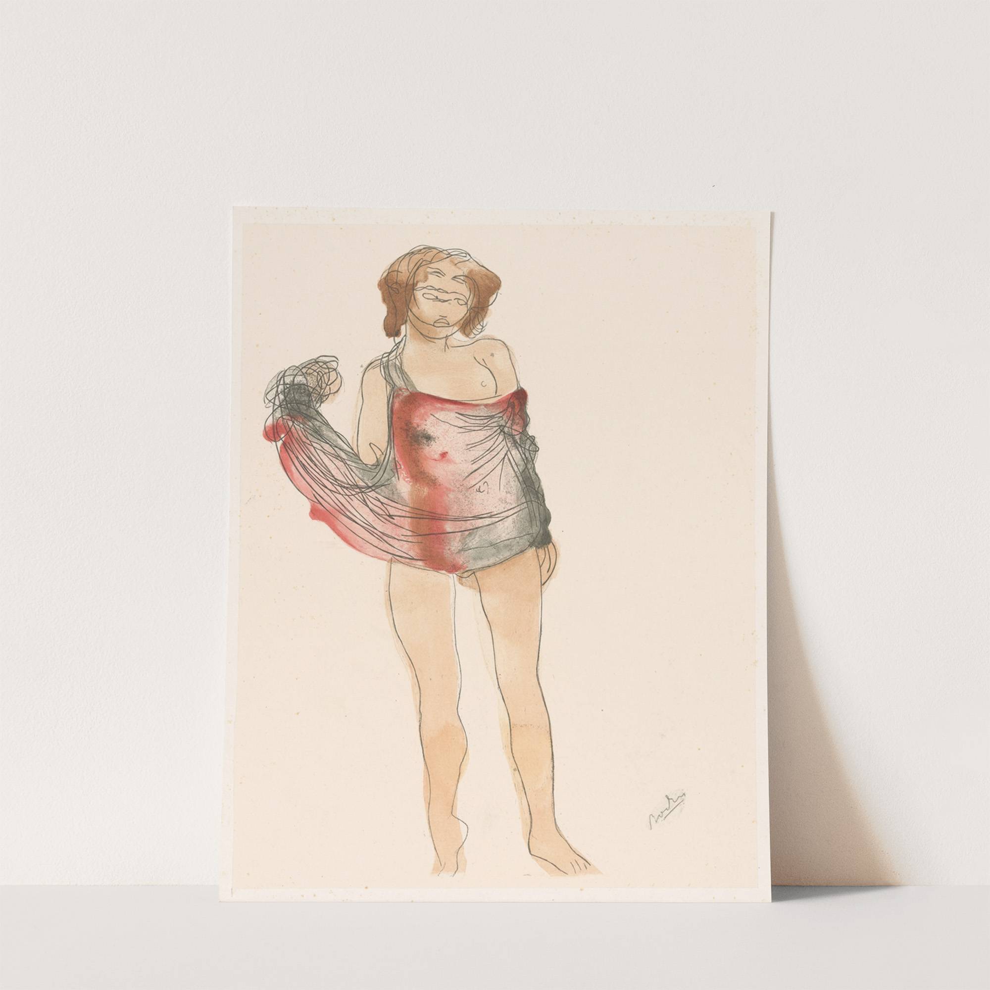 Female nude, standing, sheer red and black material wrapped around her torso (1902) by Auguste Rodin - Wall Art Print