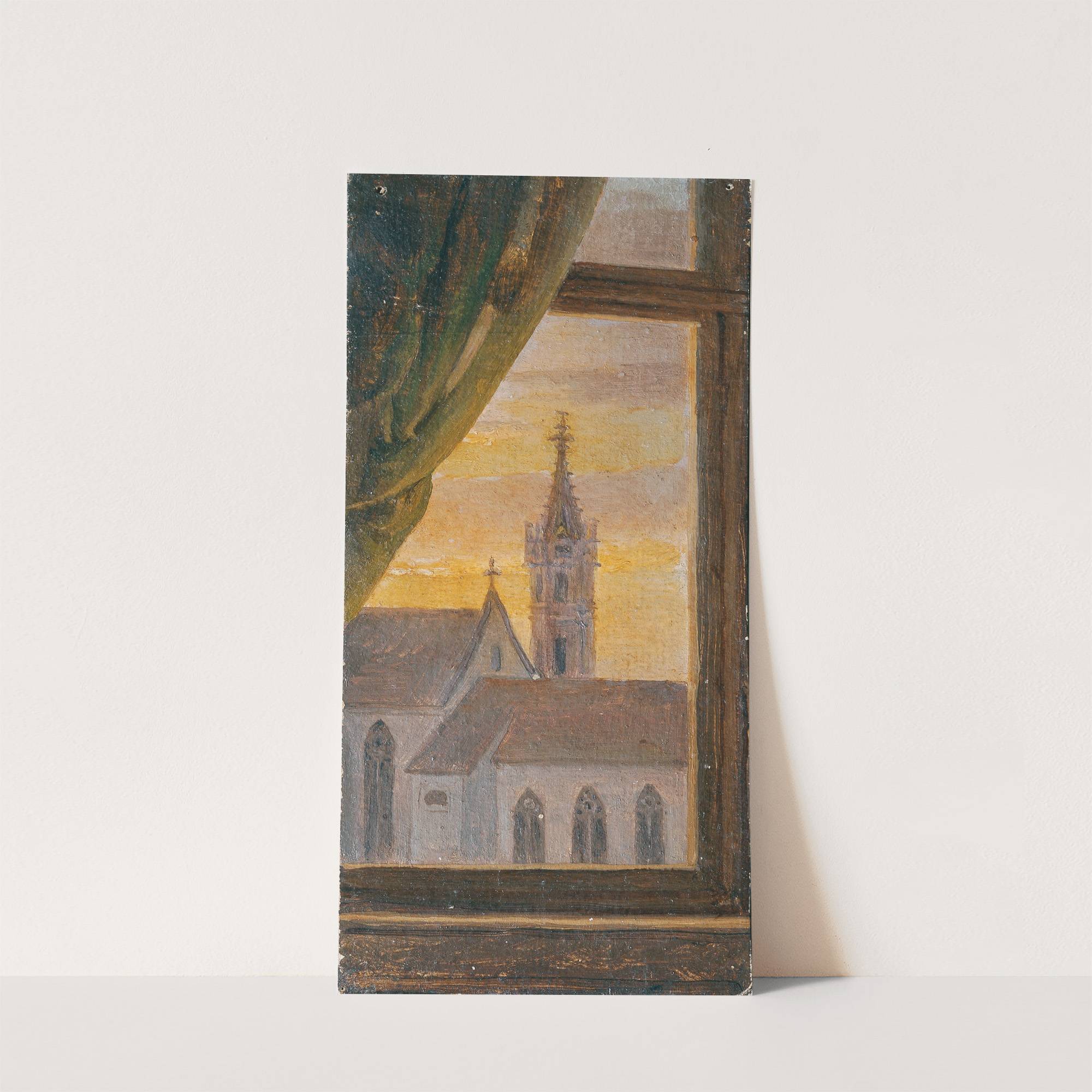 Blick durch ein Fenster auf einen gotischen Kirchturm by Johann Peter Krafft - Wall Art Print