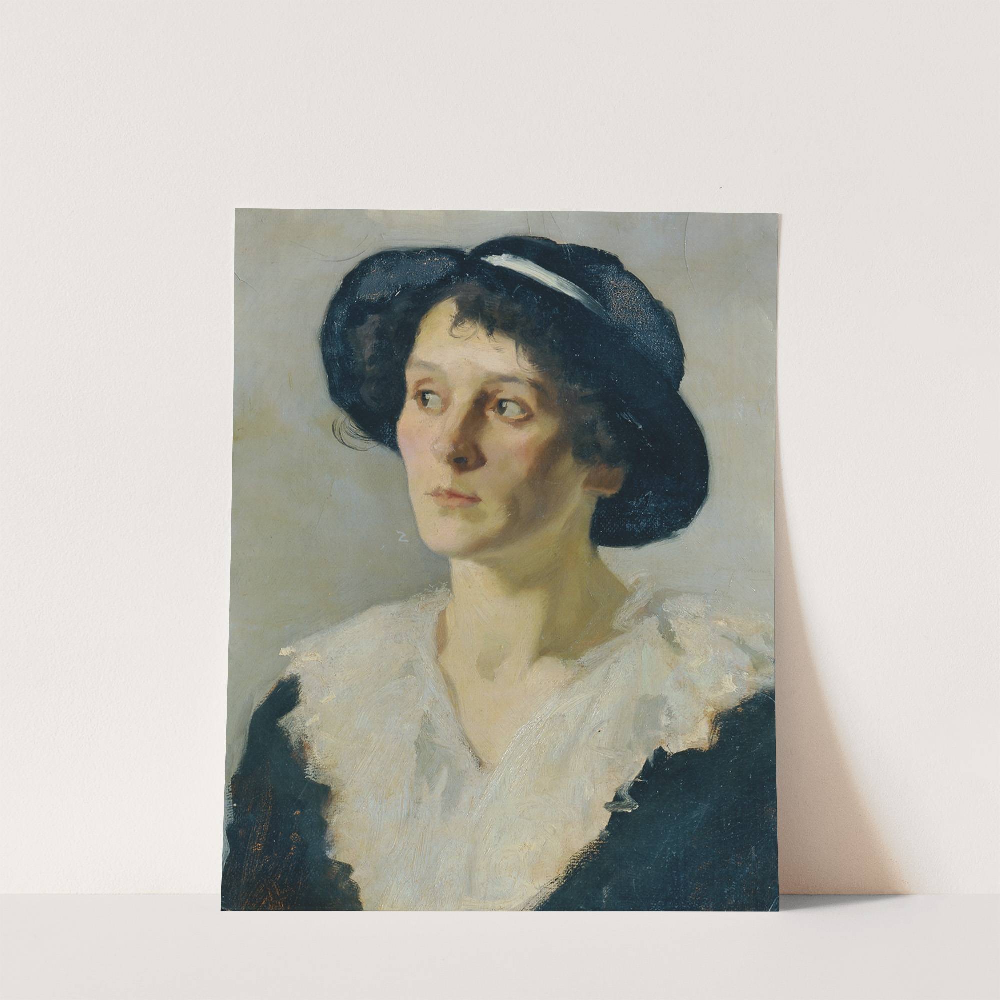 Dame mit schwarzem Hut by Josef Wawra - Wall Art Print