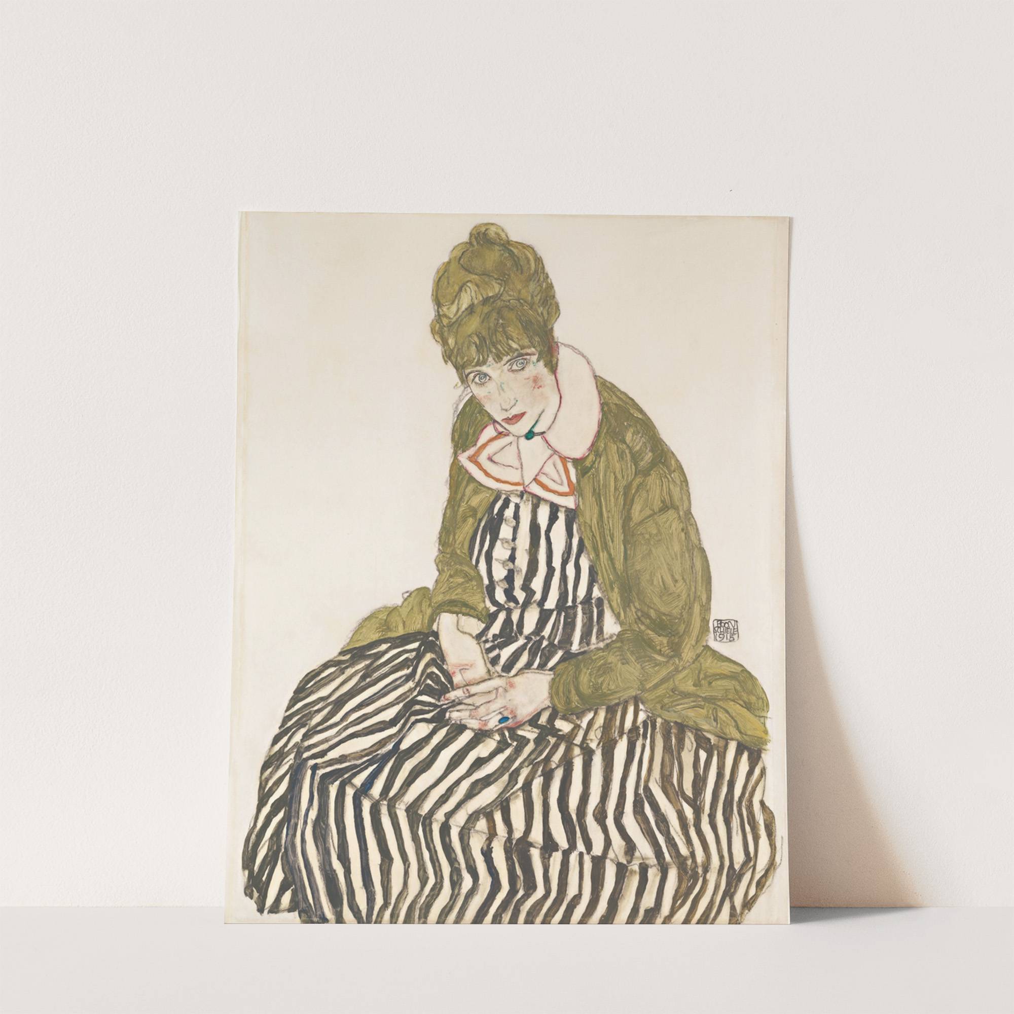 Edith with Striped Dress, Sitting by Egon Schiele - Wall Art Print