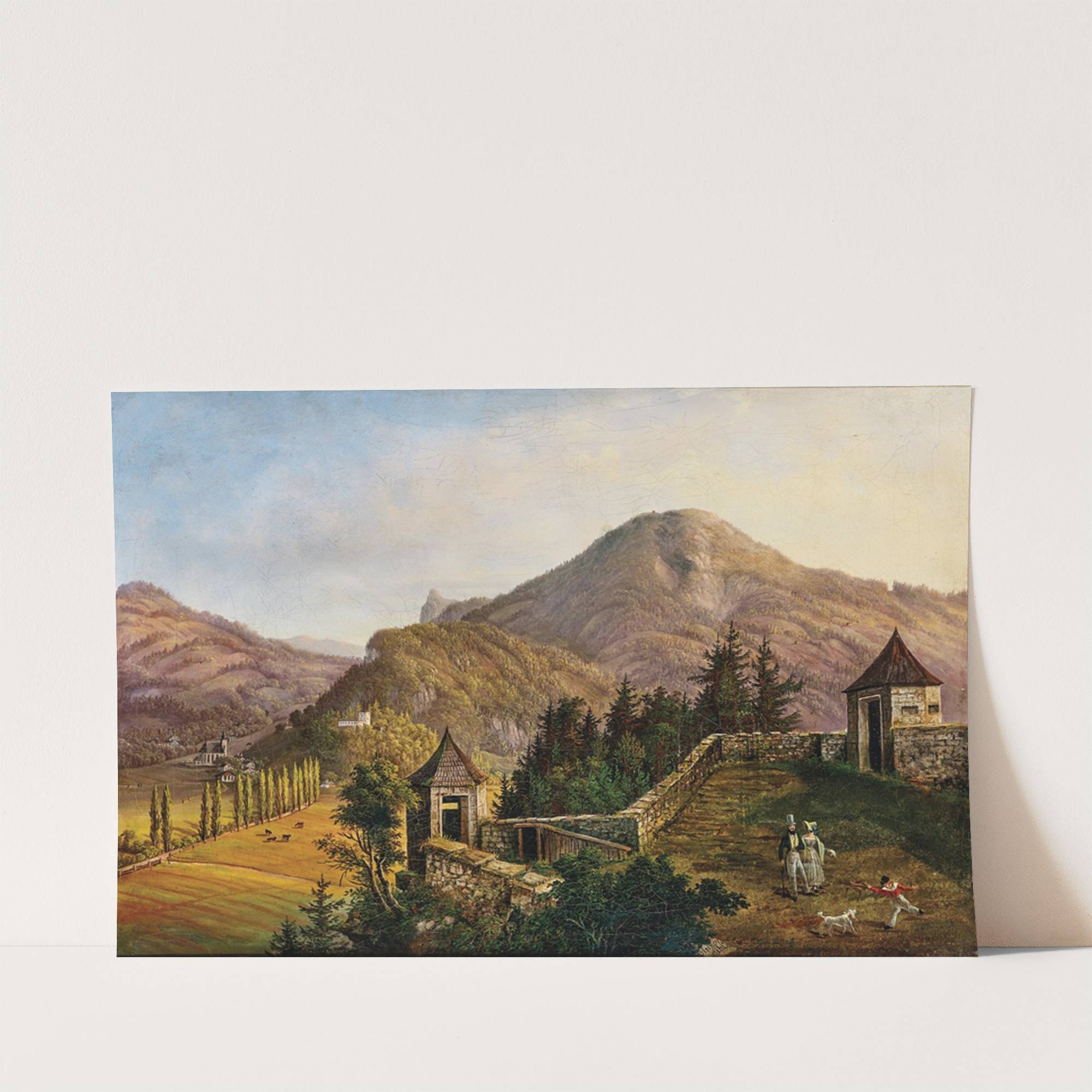 Scene in Salzburg – a view of Gaisberg, Nockstein and Kapuzinerberg by Anton Reiffenstuhl - Wall Art Print