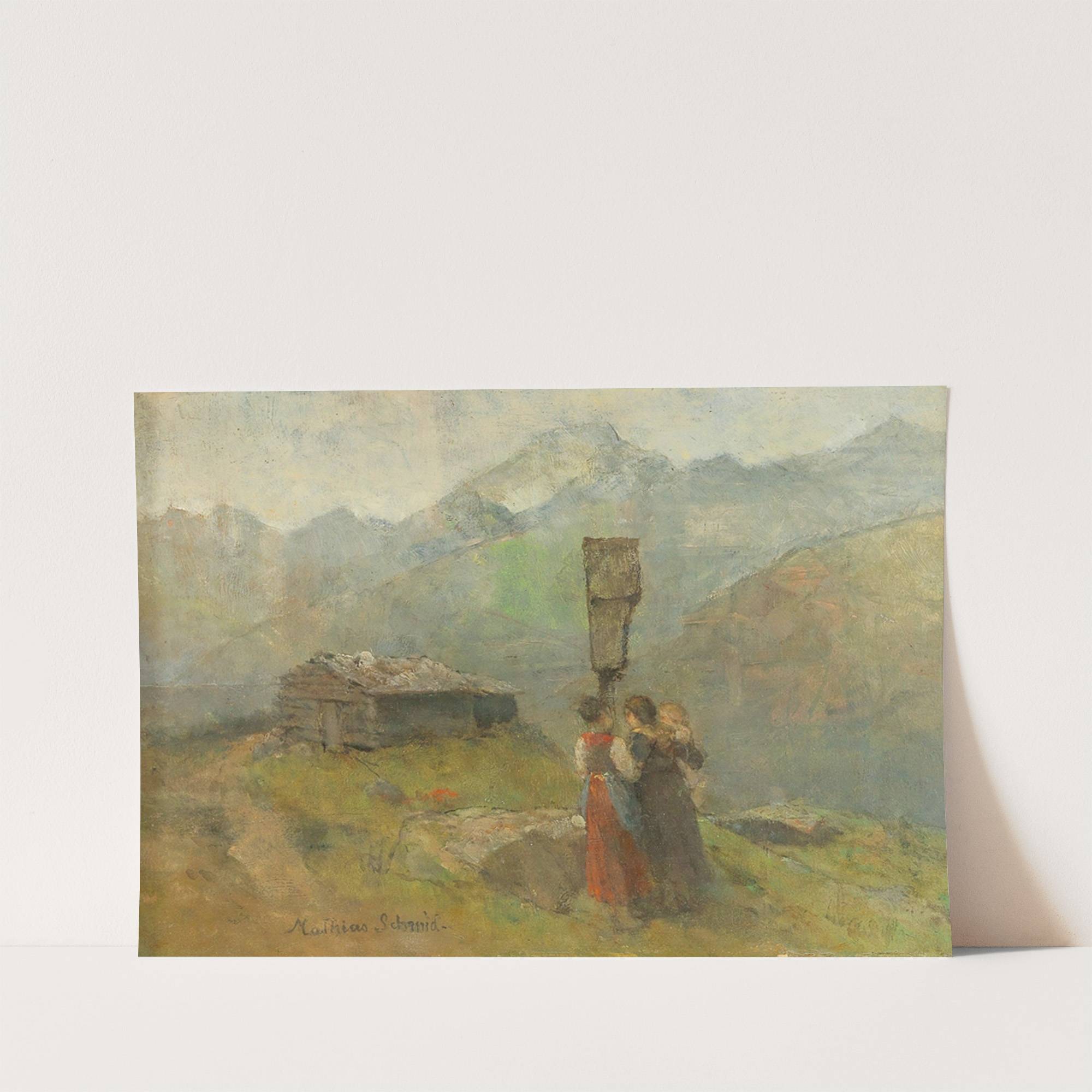 Three Women at the Wayside Shrine in the High Mountains by Mathias Schmid - Wall Art Print