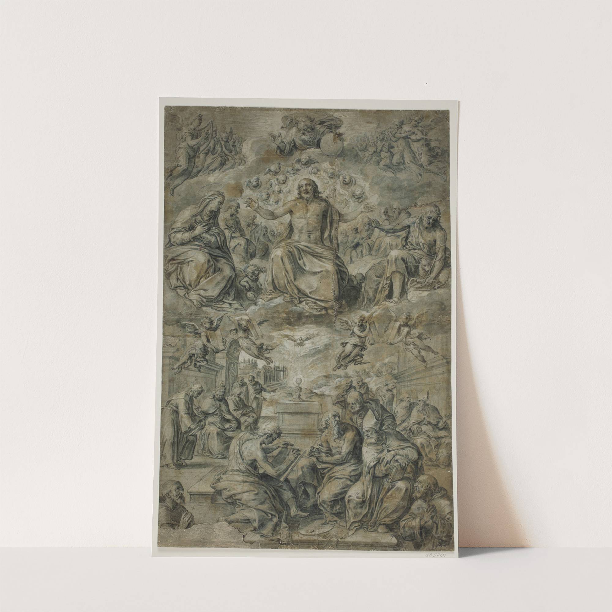 Striden over det hellige sakramente med treenigheden svævende i skyen by Avanzino Nucci - Wall Art Print