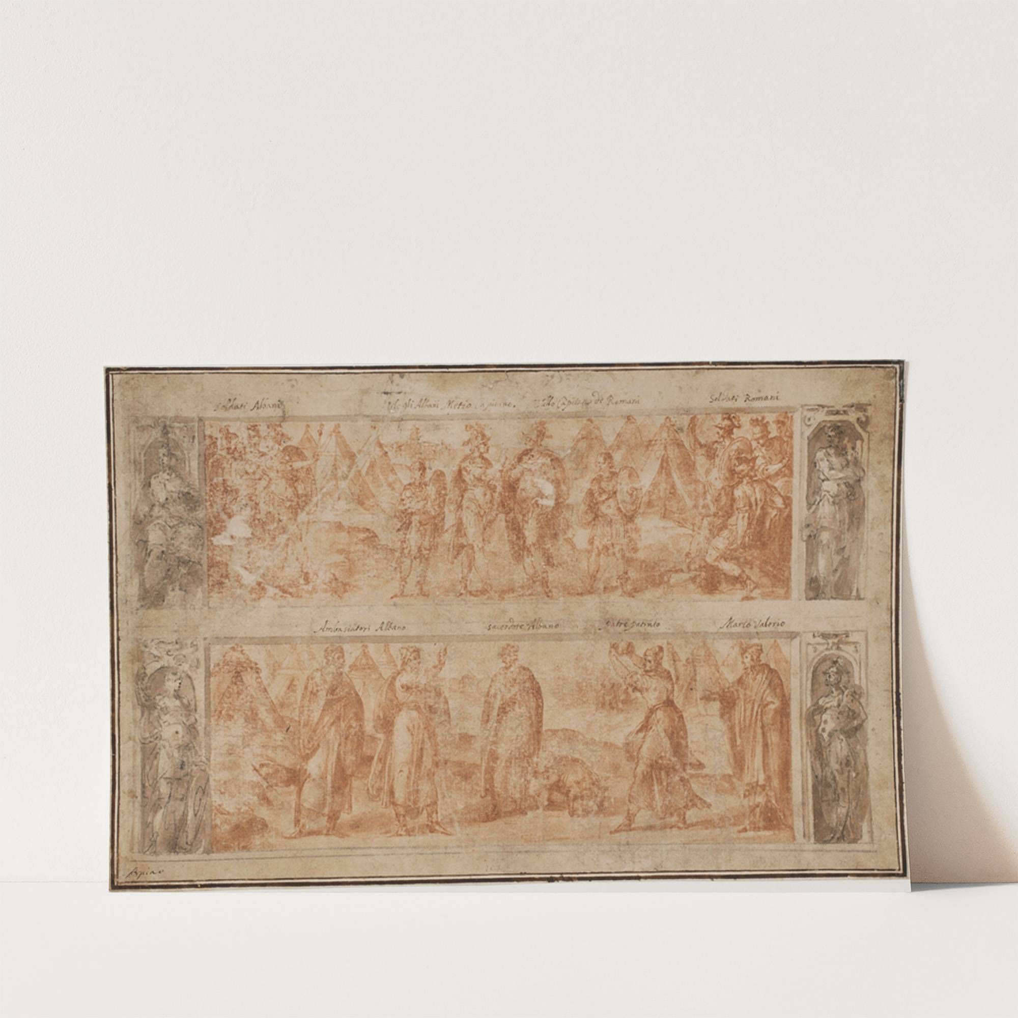 To friser, den ene over den anden, med scener fra Roms tidlige historie by Avanzino Nucci - Wall Art Print