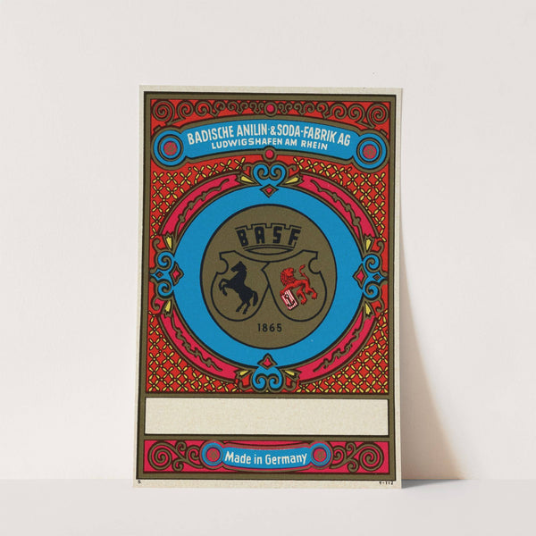 Badische Anilin & Soda-Fabrik dye label with BASF seal by Badische Anilin & Soda-Fabrik - Wall Art Print