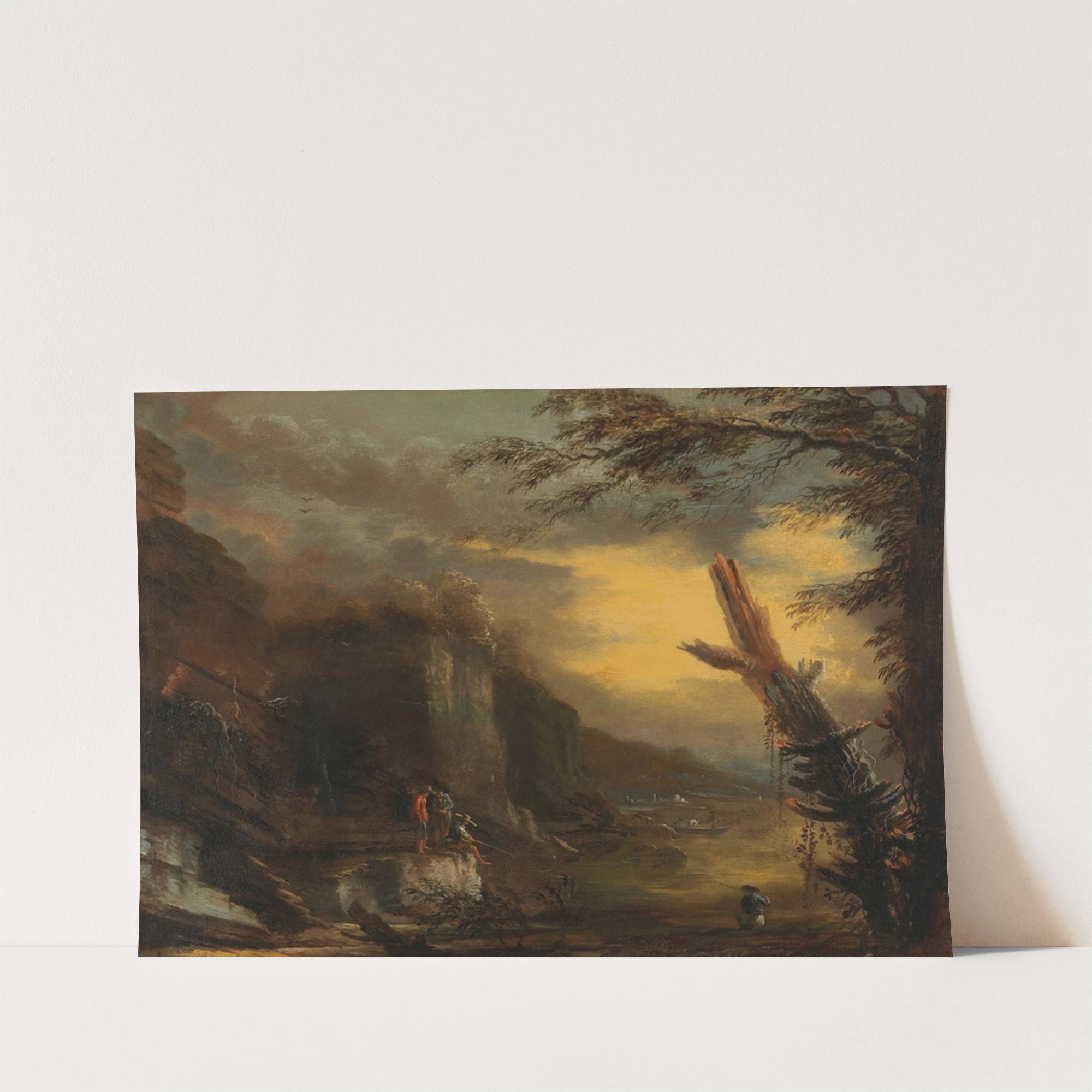 Figures fishing in a rocky coastal landscape by Salvator Rosa - Wall Art Print