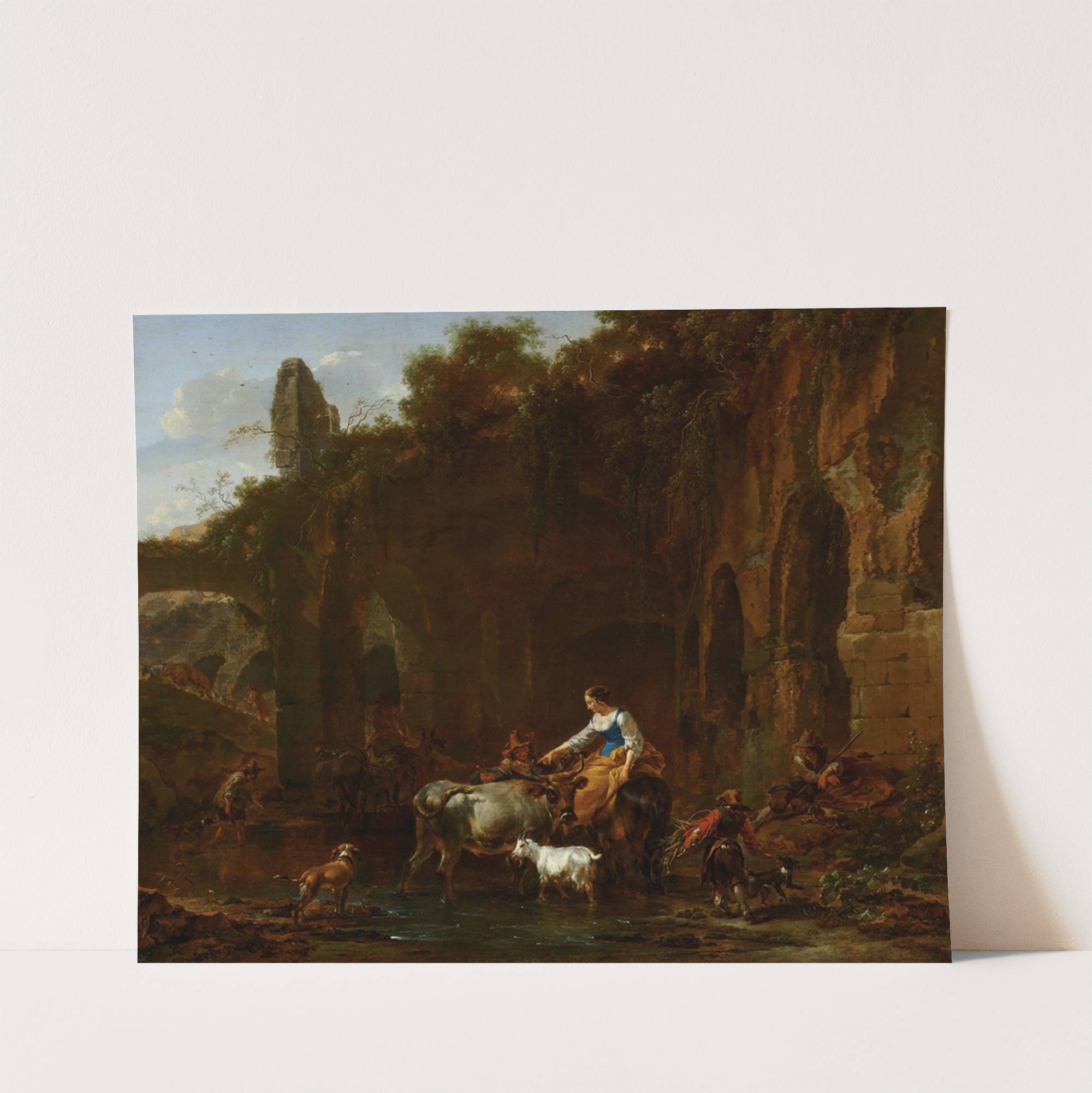Shepherds beside Roman Ruins by Nicolaes Pietersz. Berchem - Wall Art Print