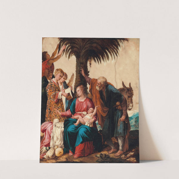 The Rest during the flight into Egypt, with a Deacon and three Angels
