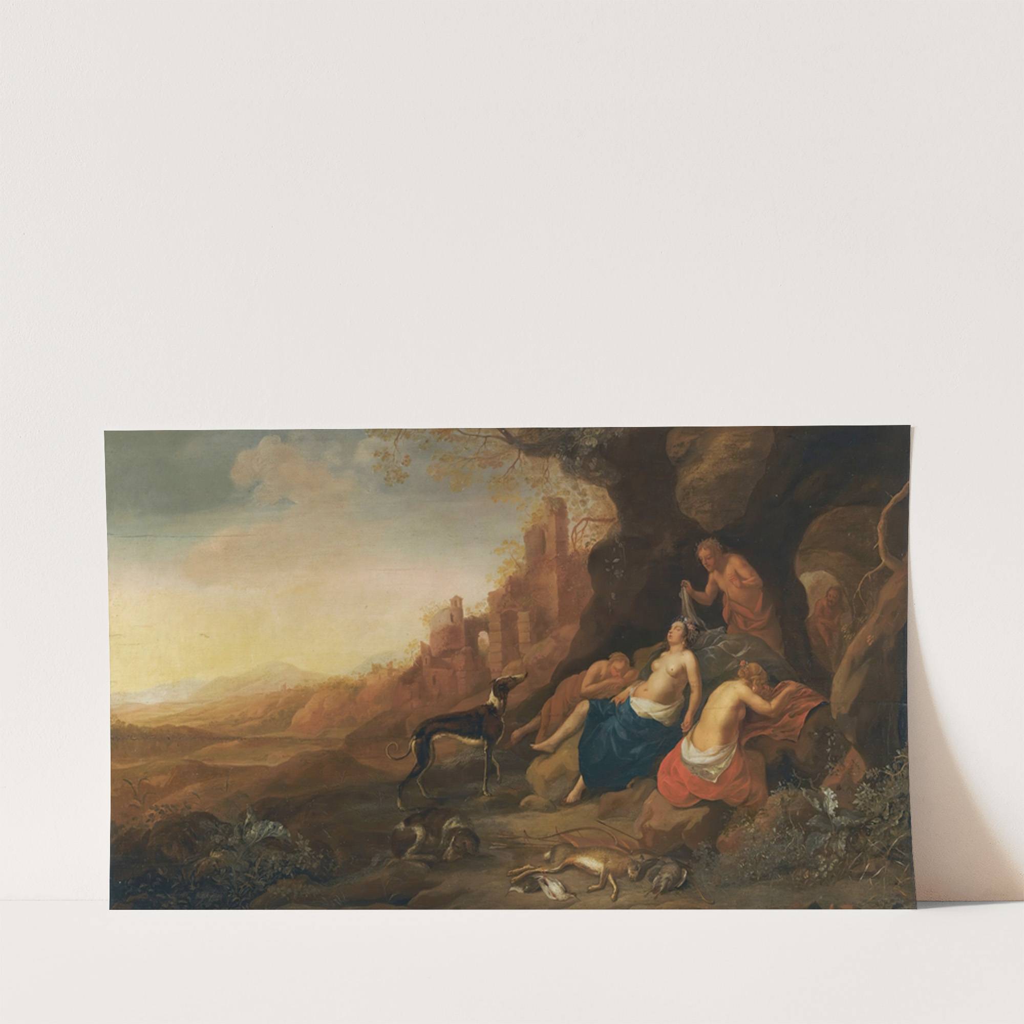 Diana And Her Nymphs Resting After A Hunt With Two Satyrs Spying On Them by Bartholomeus Breenbergh - Wall Art Print