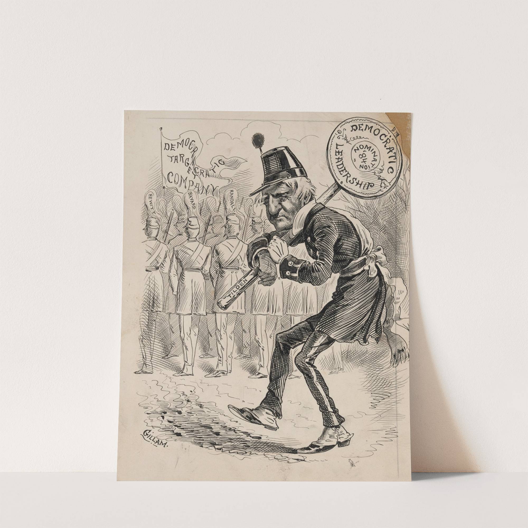 Tilden carrying sign that reads ‘Democratic Leadership Nomination ’84.’ Hewitt, Bayard, and Randall in background (1884) by Bernard Gillam - Wall Art Print