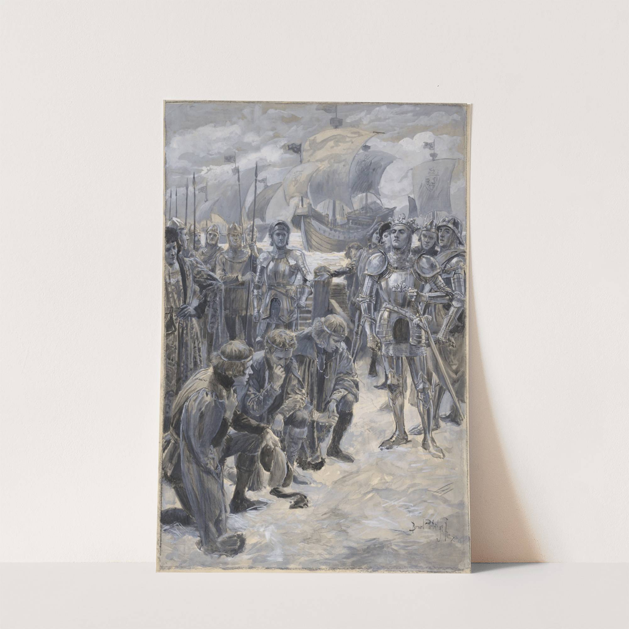 King Henry V, II, 2, as acted at the Lyceum, King Henry and Lords Scroop, Grey, and Cambridge, Lewis Waller (King Henry V) (1901) by Bernard Partridge - Wall Art Print