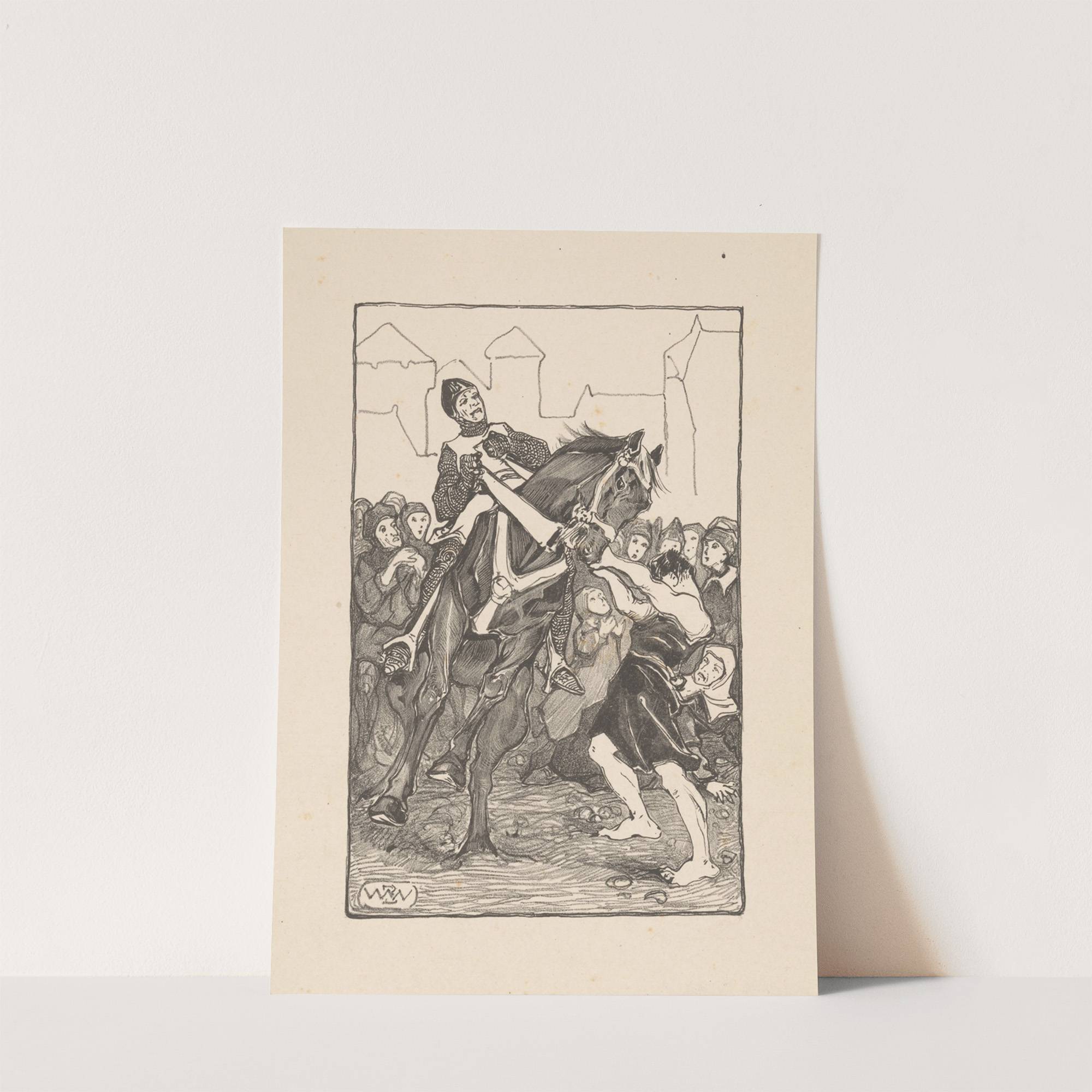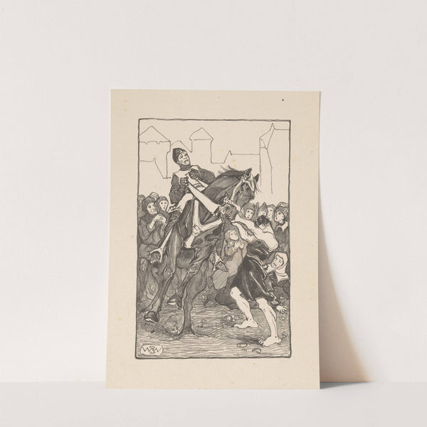 Man houdt wild paard vast op druk plein by Bernard Willem Wierink - Wall Art Print
