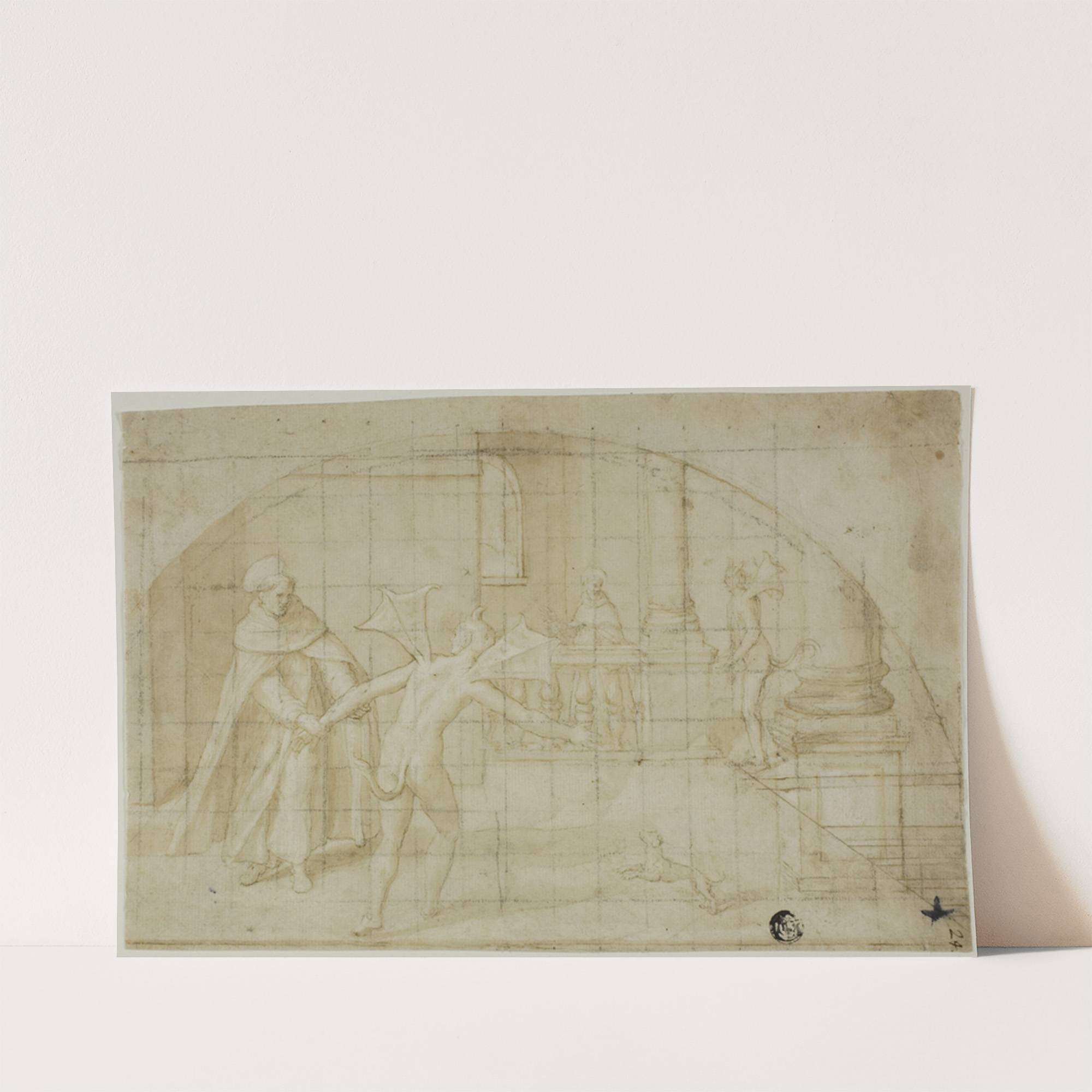 Design for a Lunette; Devils and Saint in a Monastery by Bernardino Poccetti - Wall Art Print