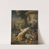 A Still Life Of Game Birds, Grouse, A Hare And A Kingfisher, With A Basket Of Fruit At The Foot Of A Stone Urn, An Ornamental Garden With A Fountain Beyond by Jan Weenix - Wall Art Print