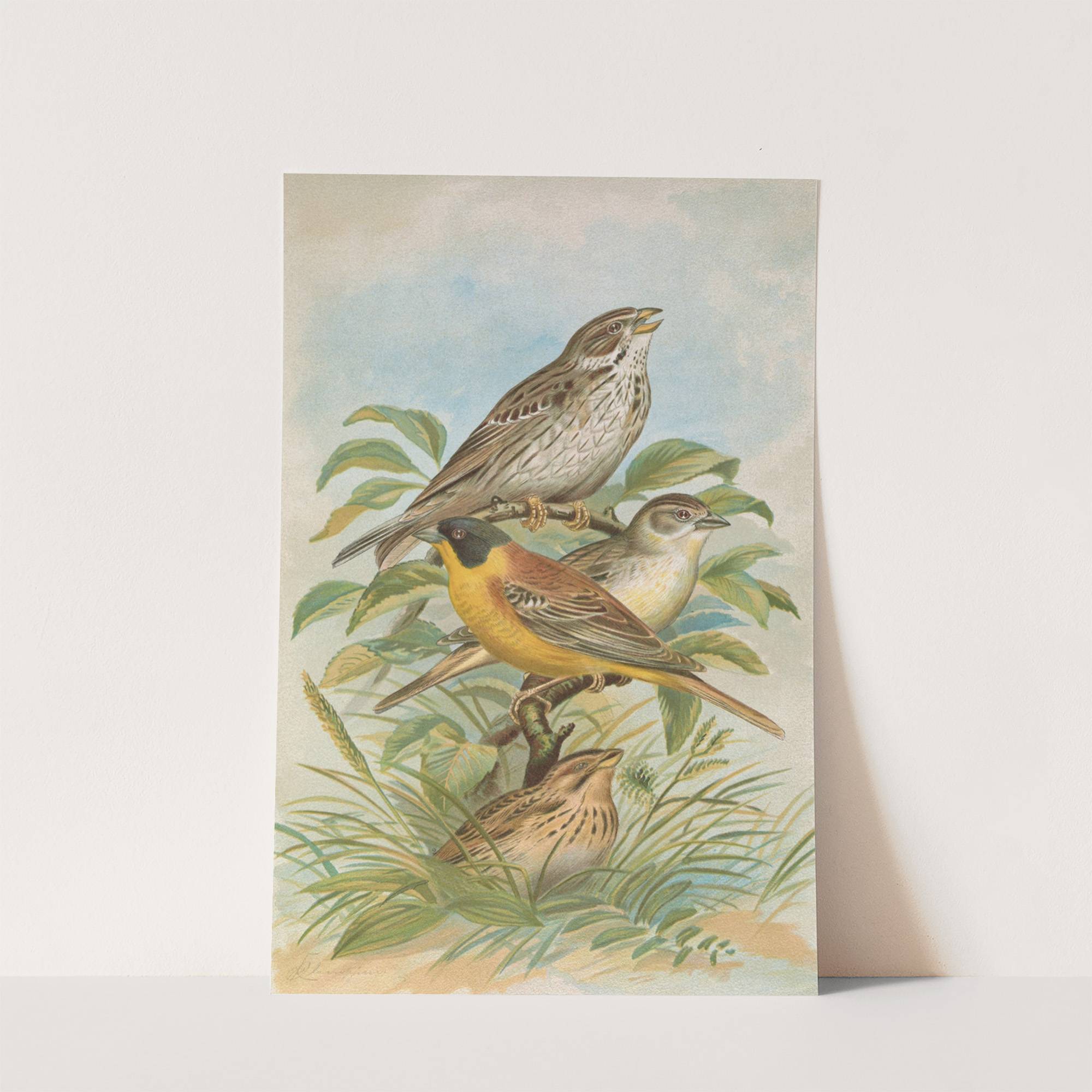 Miliaria calandra, Emberiza melanocephala Scopoli by Johann Friedrich Naumann - Wall Art Print