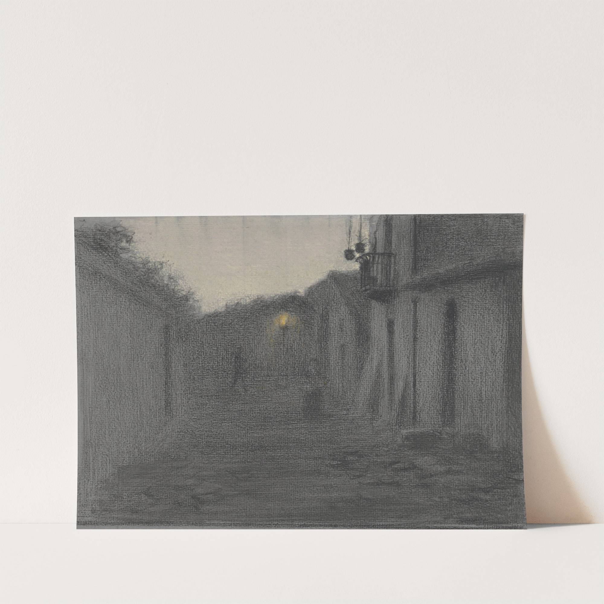 Straatje met een lantaarn in de schemering by Bramine Hubrecht - Wall Art Print