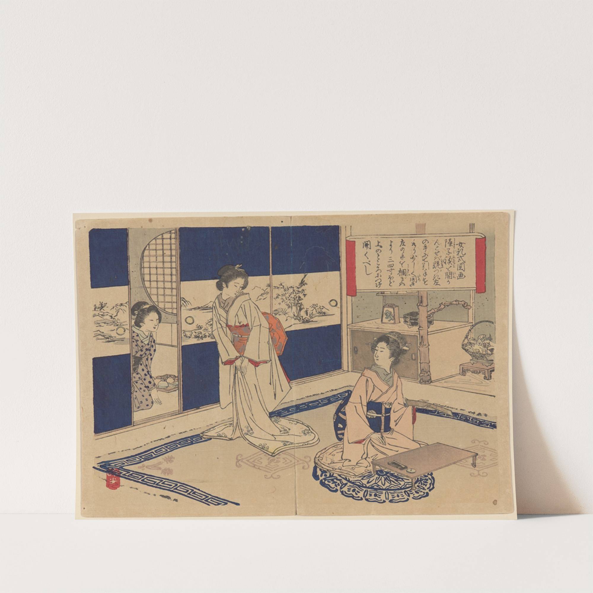 Manner of Opening a Paper Door, from Pictures of Female Manners (Onna Reishiki Zuga) by Bunkyu Sakura - Wall Art Print