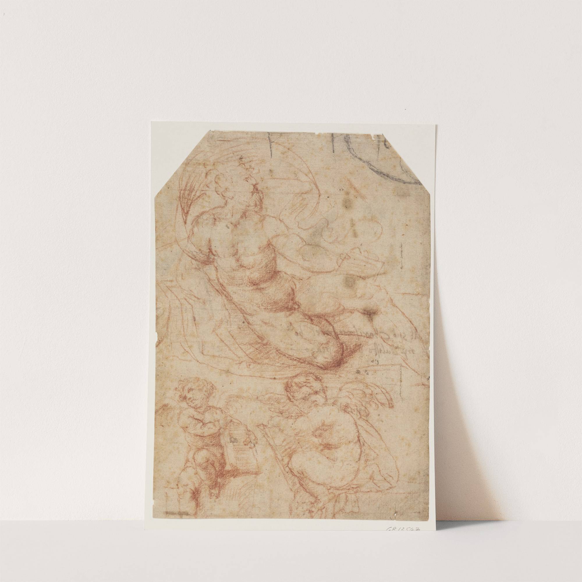 Fo en siddende mand med en skrifttavle, fn to siddende putti med skrifttavler by Callisto Piazza - Wall Art Print