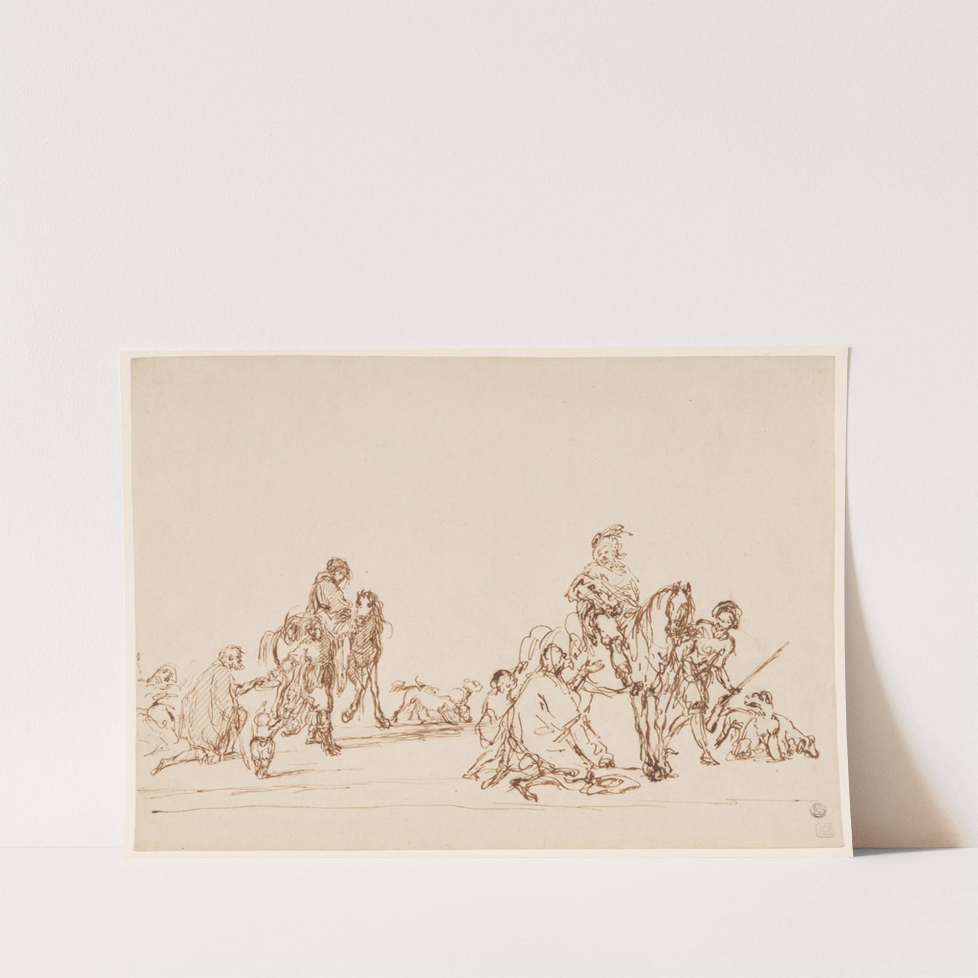 Hunters Giving Alms to Beggars by Carel van Falens - Wall Art Print