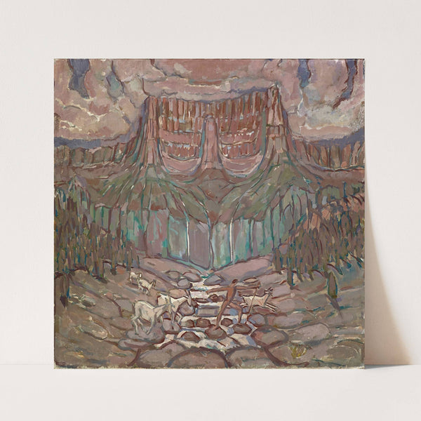 Shepherd and Flock Crossing a River in the Mountains by Carl Burckhardt - Wall Art Print