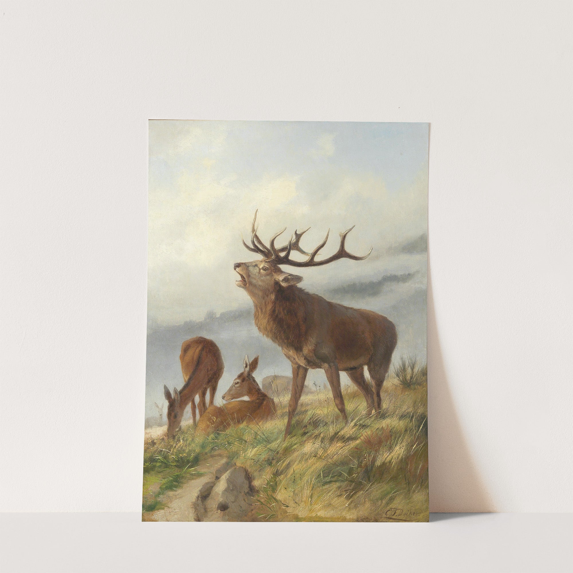 Röhrender Hirsch mit Hirschkühen by Carl Friedrich Deiker - Wall Art Print