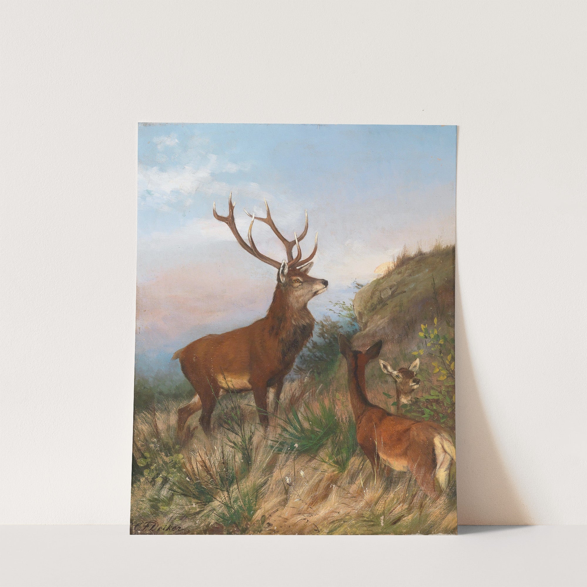 Rotwild in der Abenddämmerung by Carl Friedrich Deiker - Wall Art Print