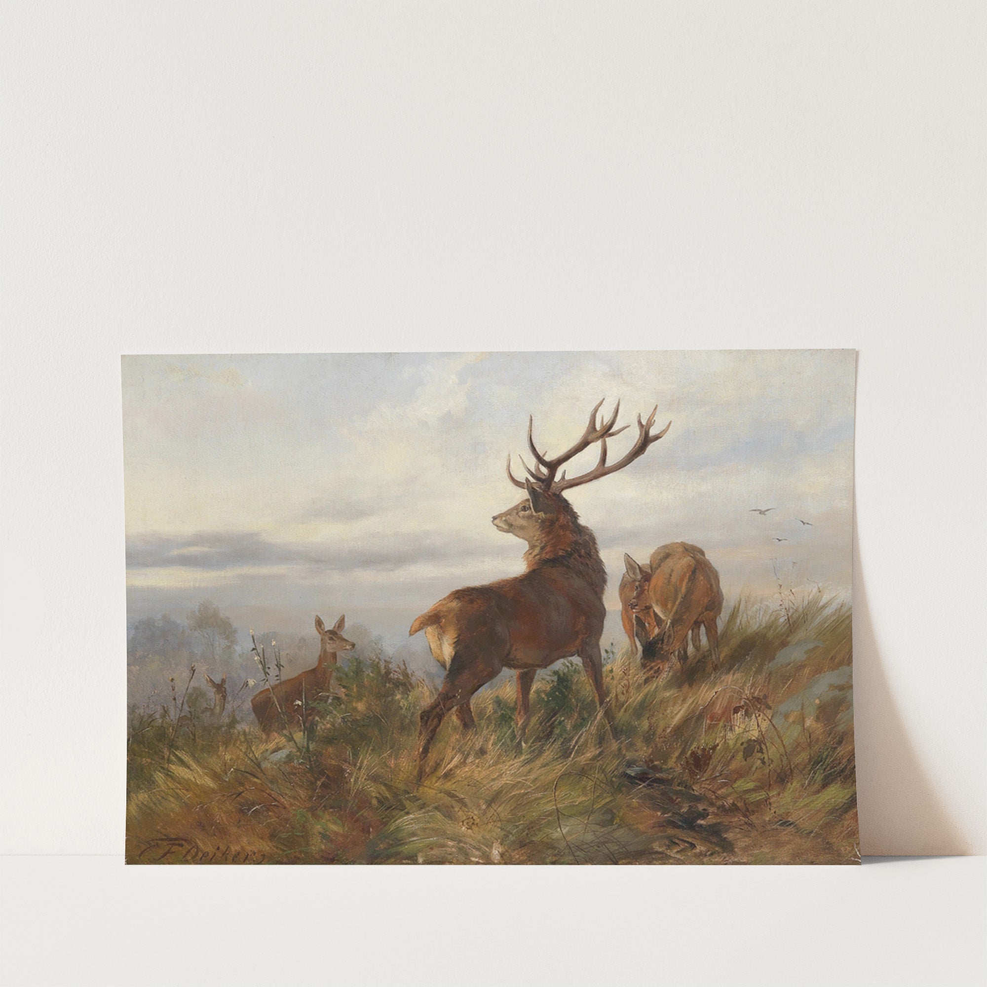 Rotwild in der Morgendämmerung by Carl Friedrich Deiker - Wall Art Print