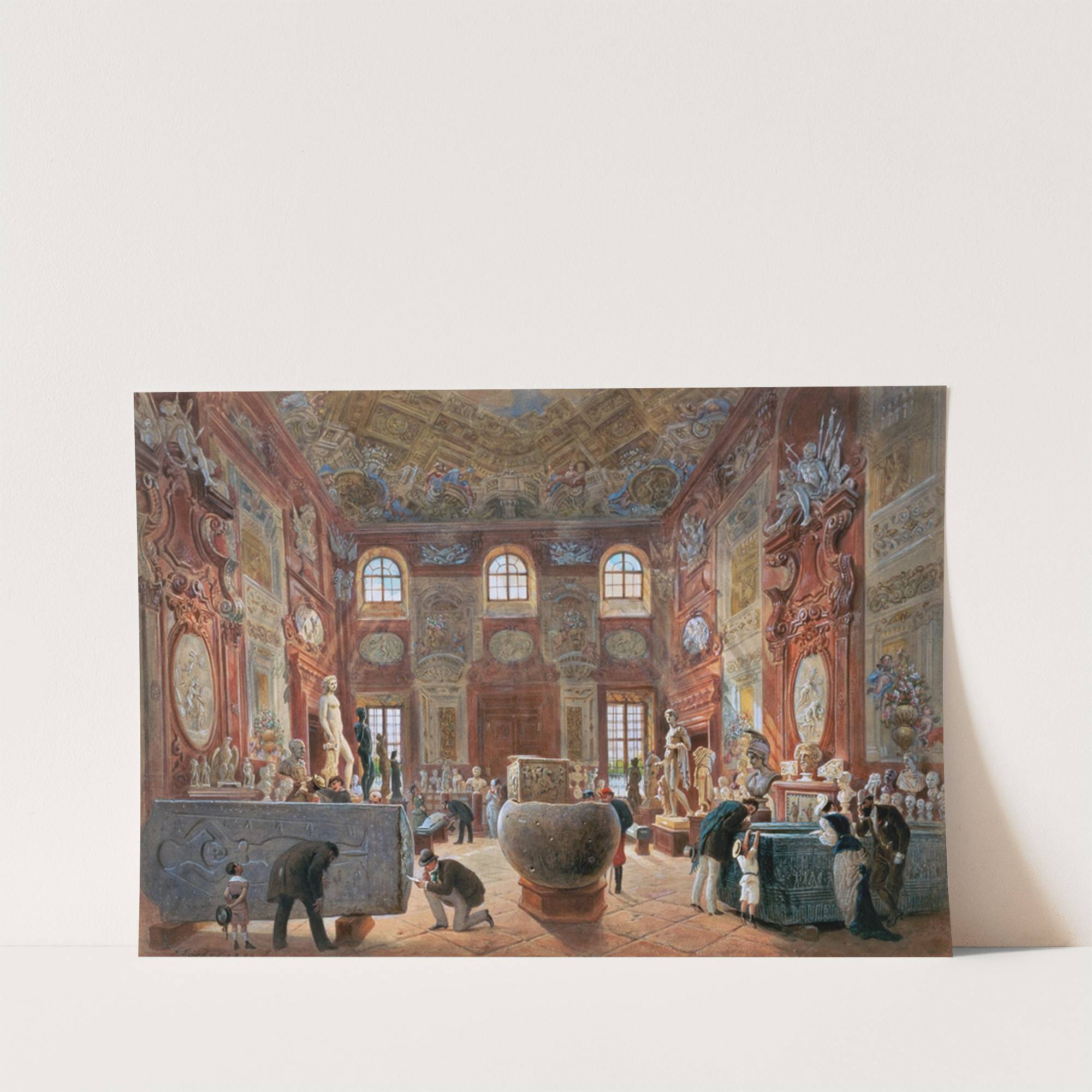 Der große Marmorsaal des Unteren Belvederes mit den Skulpturen der Antikensammlung by Carl Goebel the younger - Wall Art Print