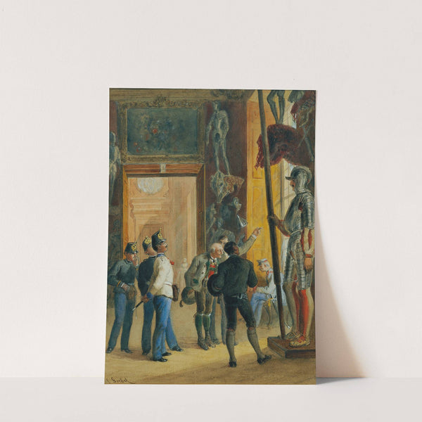 Österreichische Offiziere und zwei Tiroler besichtigen die Ambraser Sammlung im Unteren Belvedere by Carl Goebel the younger - Wall Art Print
